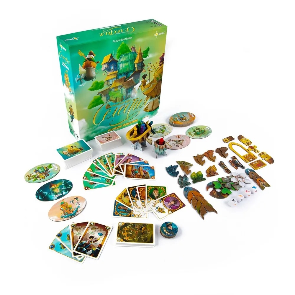 "Селестия: Полное издание" – это увлекательная настолка, сочетающая стратегию, блеф и командное взаимодействие. В этом издании собраны база, оба дополнения ("Рука помощи" и "Бунт на корабле"), промо-материалы, а также специальные правила для игры дуэтом. В коробке вас ждёт всё необходимое для захватывающего приключения – и даже сборный воздушный корабль, который можно украсить наклейками. Основная механика игры построена на выборе: остаться на корабле, рискуя ради более ценных сокровищ, или сойти в ближайшем городе, чтобы гарантированно получить награду. Капитан должен преодолевать препятствия, используя карты снаряжения, а пассажиры – решать, доверять ли ему.