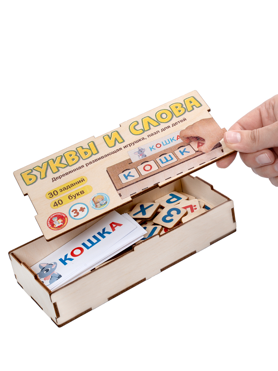 Игра-пазл "Буквы и слова" в деревянной коробке – волшебный мир первых открытий для вашего малыша! Это не просто пазл – это дверь в удивительный мир слов, созданная по принципам системы Монтессори, где обучение происходит естественно, через игру и самостоятельное исследование.