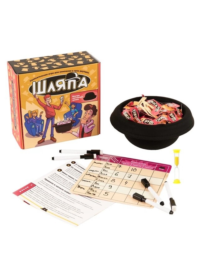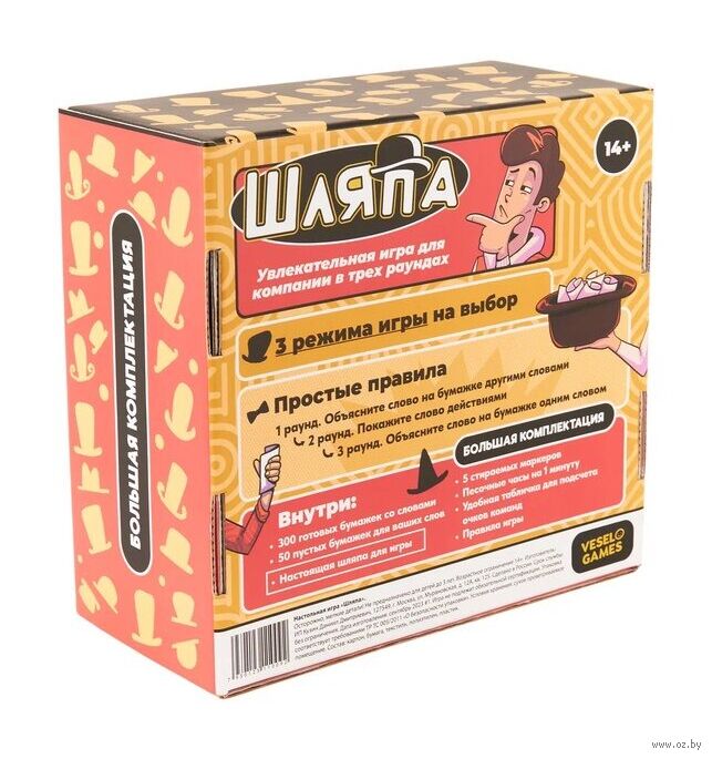 Внутри вы найдете интересные правила, состоящие из трех режимов игры и трех раундов. Ну и, конечно, настоящую шляпу!