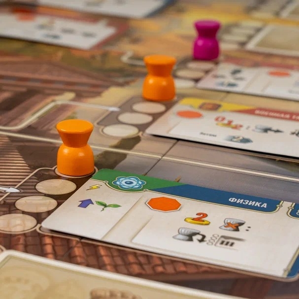 Игра предлагает большой простор для набора очков, но простые и лаконичные варианты действий. Вот вы первым изучили новую технологию и получили победные очки за карту лидера. Но это ещё не всё! Технология позволяет вам перенести кубик с любой шкалы развития на шкалу вложения. А там вас уже ждёт мгновенный бонус – жетон заселения. Теперь вы сможете заселить деревню в тот же ход и… получить новые бонусы!