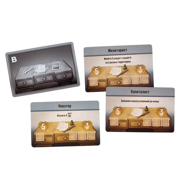 В игре нет прямых столкновений, но есть выраженная конкуренция. Карта территорий и дерево технологий общие: ваши достижения – это новые возможности для всех игроков. Соперник может не только освоить открытую вами технологию или построить деревню на вашей территории, но и занять нужную ячейку действия или увести карту лидера. Готовьтесь к напряжённой гонке!