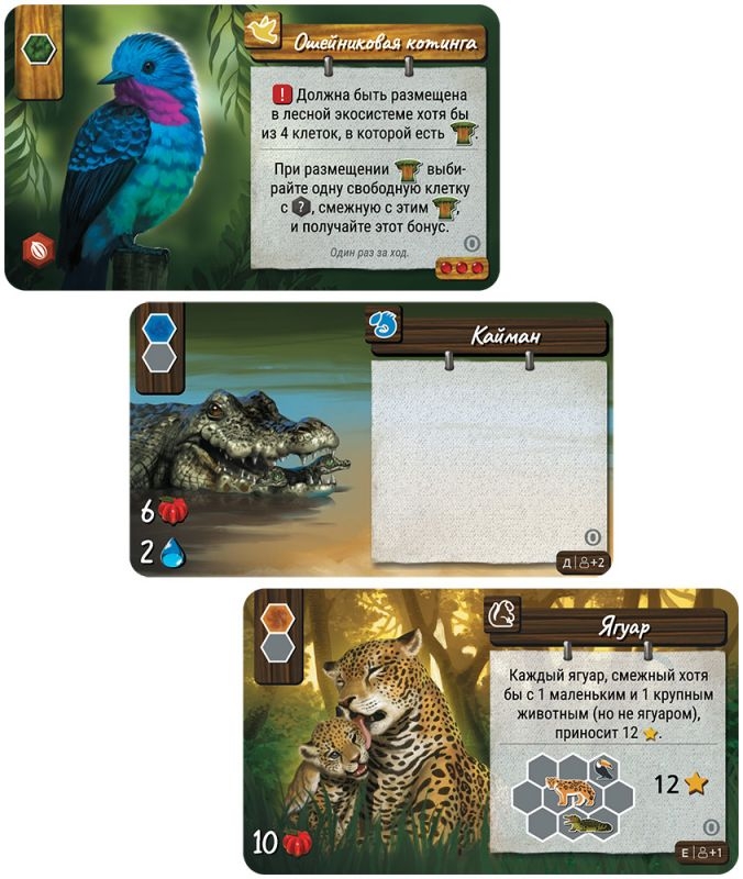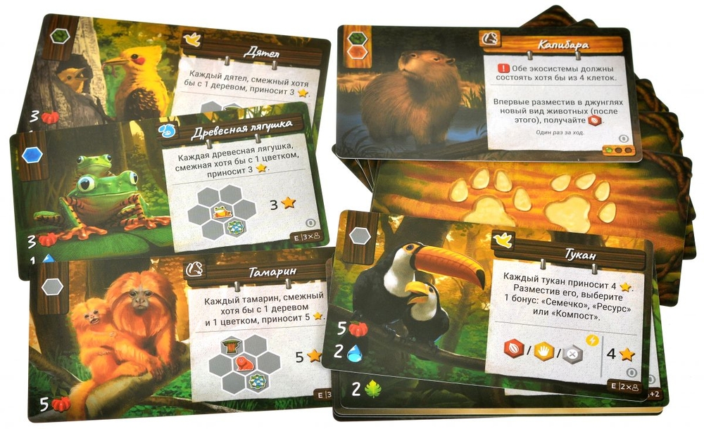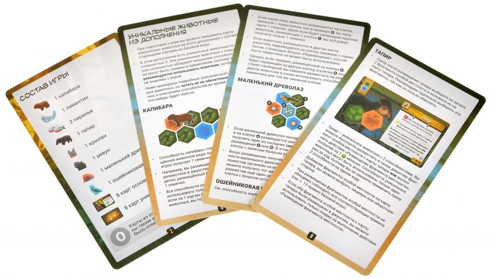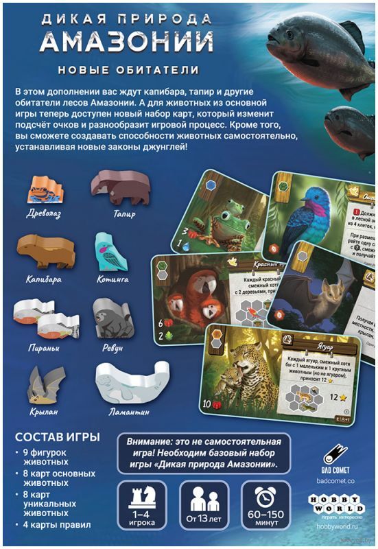 В этом дополнении вас ждут капибара, тапир и другие обитатели лесов Амазонии. А для животных из основной игры теперь доступен новый набор карт, который изменит подсчёт очков и разнообразит игровой процесс.