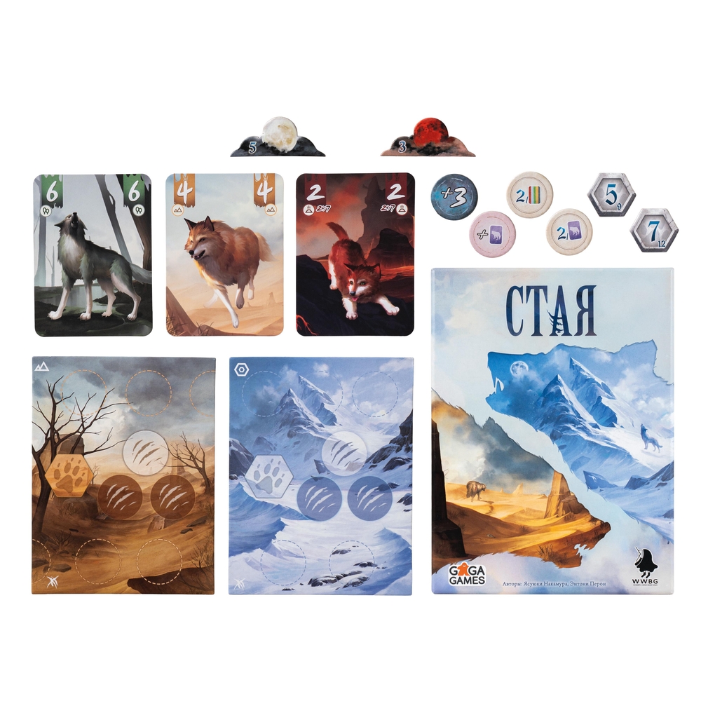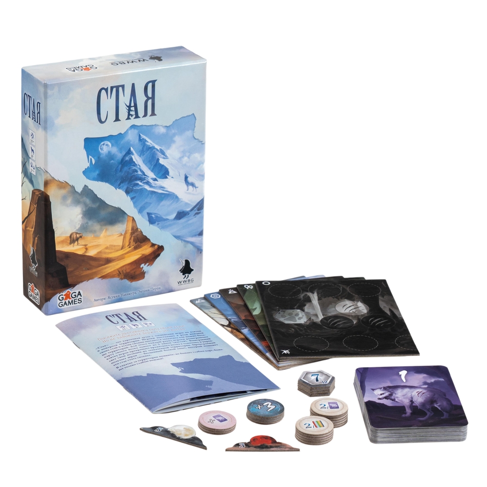 "Стая" – зубастая карточная дуэль с элементами игры на взятки. Динамичная, головоломная и непредсказуемая. Оскальте свои острые клыки и покажите сопернику, кто сильнейший вожак. Не забывайте держать ухо востро, пока будете разглядывать восхитительные иллюстрации с грозными хищниками!