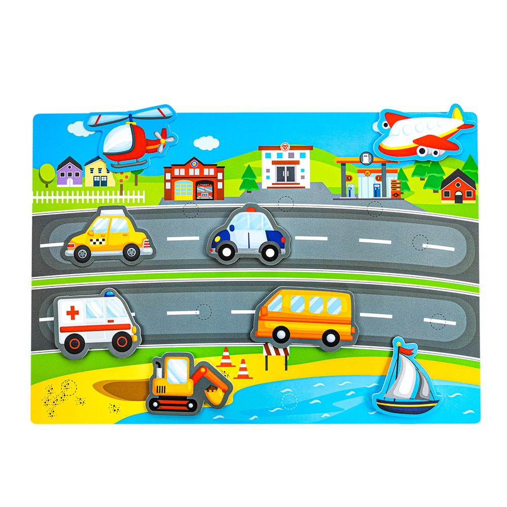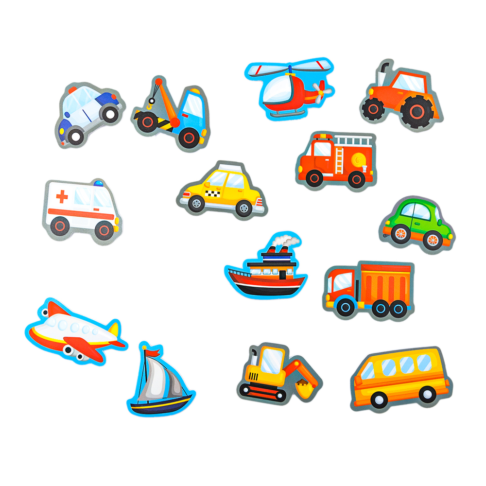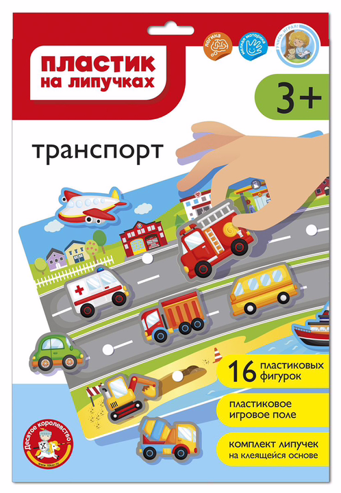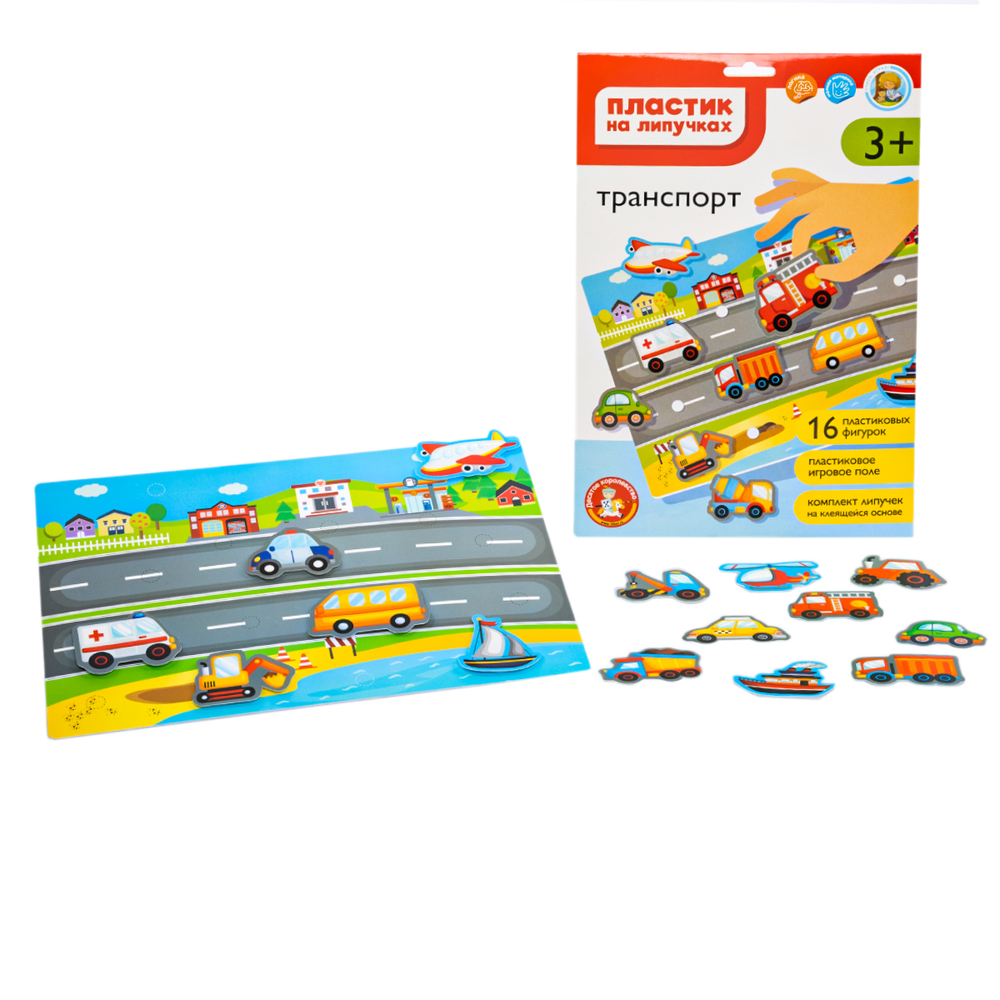 Пластик на липучках "Транспорт" положительно влияет на развитие у ребенка мелкой моторики, логического мышления и памяти.