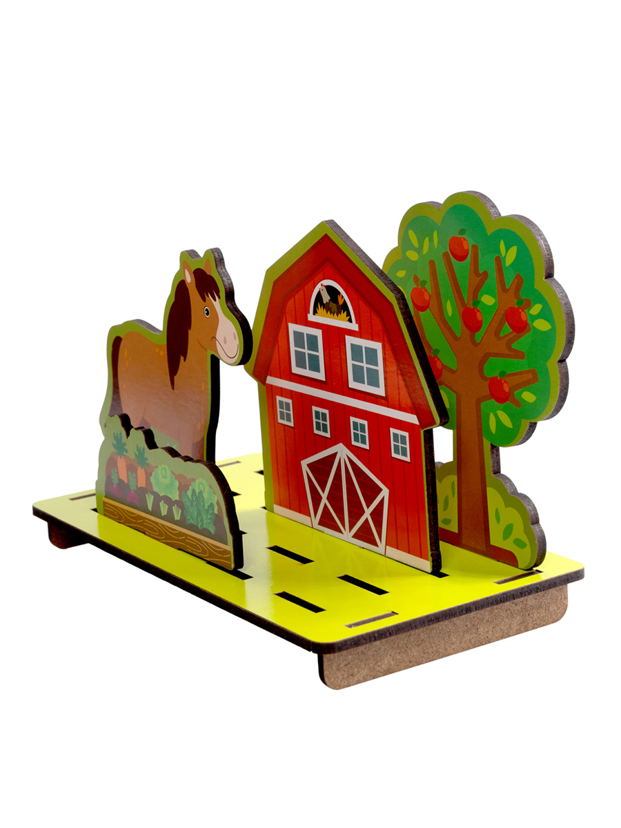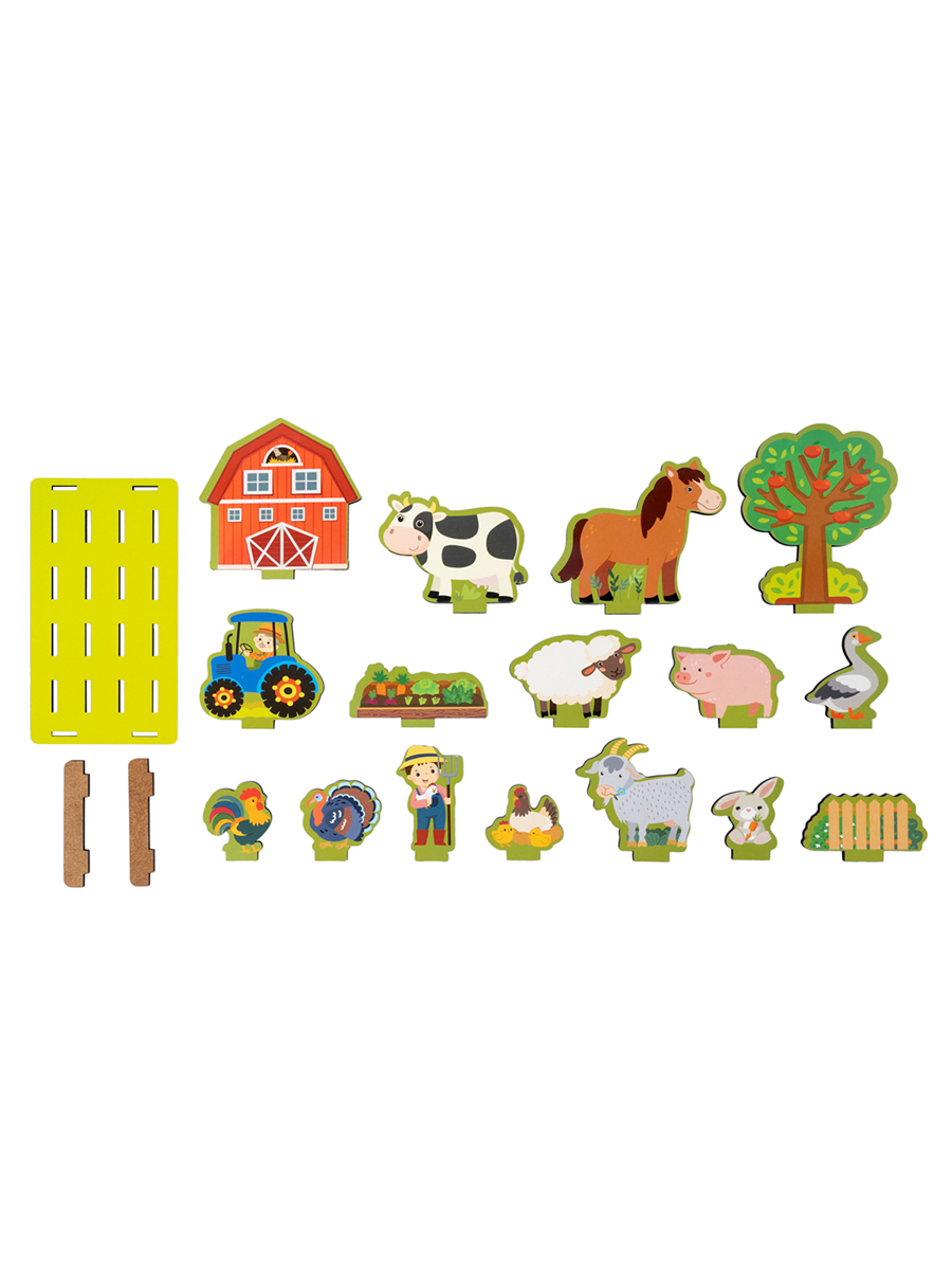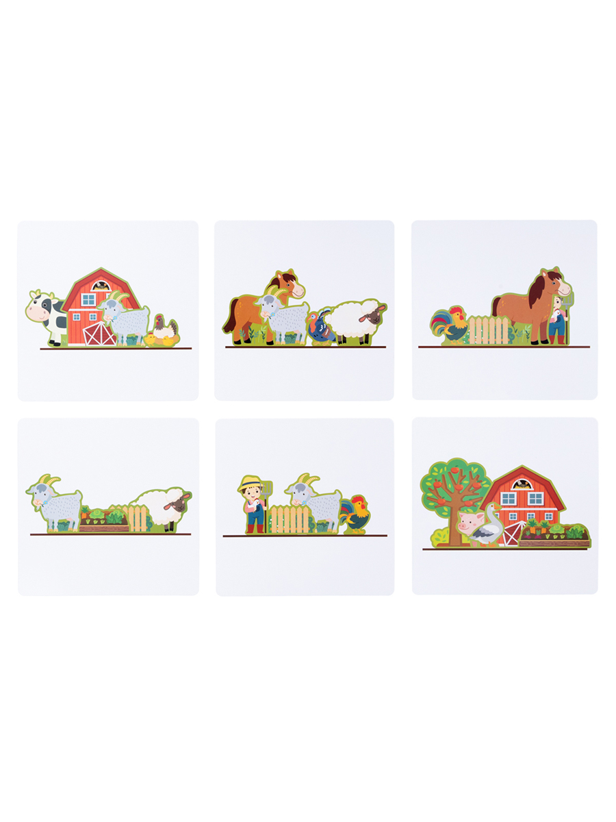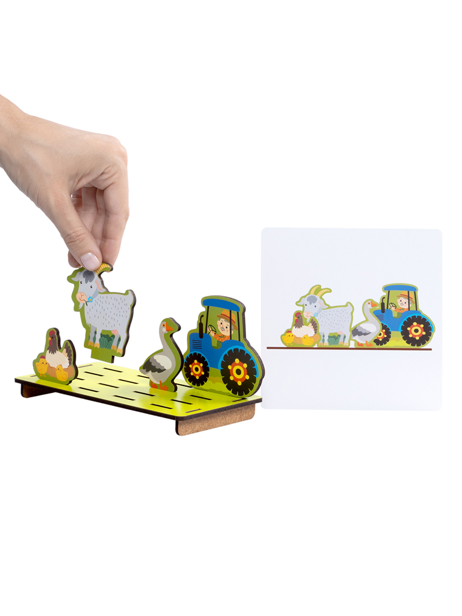 Развивающая игра из дерева "Что за чем? Ферма" – это интересная игра для малышей. По заданиям ребенок составляет объемную картинку, состоящую из фигурок обитателей фермы.