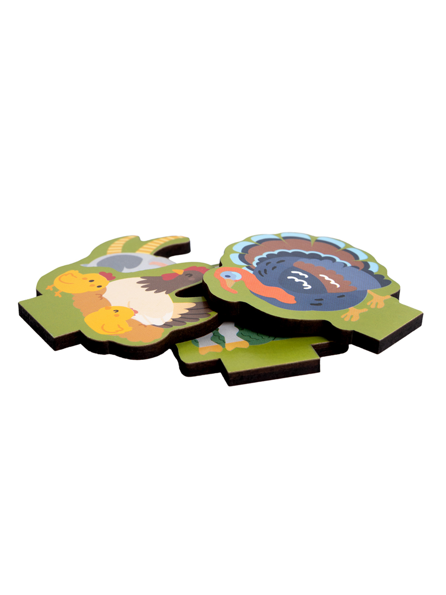 Фигурки изготовлены из древесного материала. Толщина всех элементов около 3 мм. Края закруглены и тщательно обработаны. Все материалы, использованные для изготовления данной игрушки, проверены и имеют сертификаты соответствия. Ознакомиться с сертификатом можно на страничке товара.