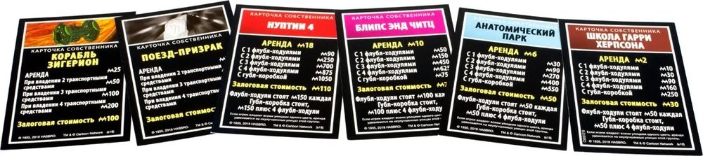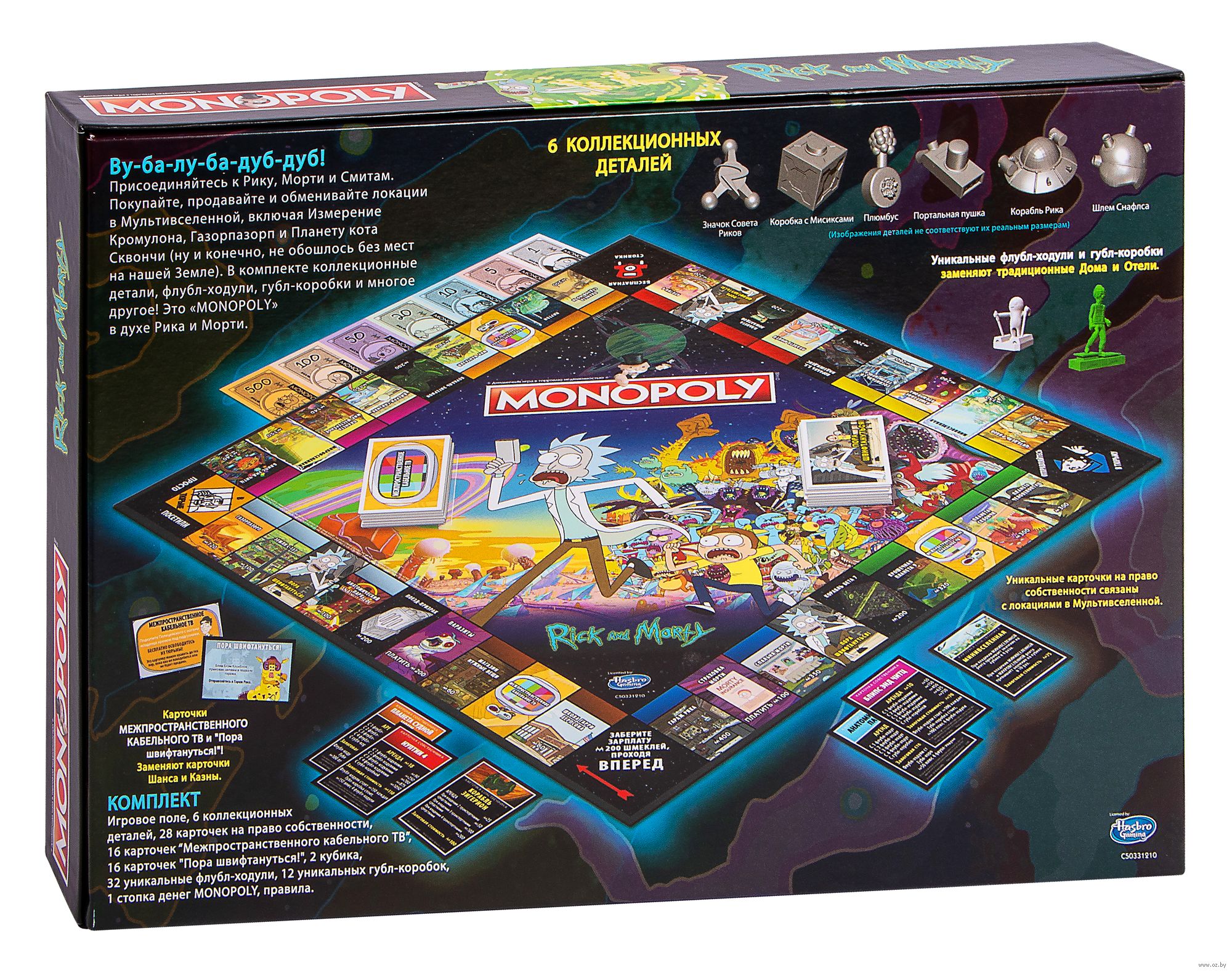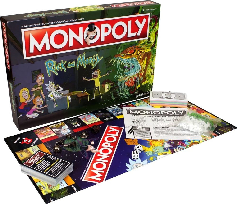 Ву-ба-лу-ба-дуб-дуб! Присоединяйтесь к Рику, Морти и Смитам. Покупайте, продавайте и обменивайте локации в Мультивселенной, включая Измерение Кромулона, Газорпазорп и Планету кота Сквончи (ну и, конечно, не обошлось без мест на нашей Земле). В комплекте коллекционные детали, Цитадели, Губл-боксы и многое другое! Это "Монополия" в духе Рика и Морти.