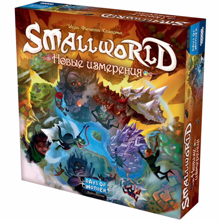 Дополнение "Новые измерения" позволяет создавать собственные игровые поля с помощью нескольких десятков двусторонних фрагментов, а также придумывать уникальные сценарии борьбы за регионы Маленького мира. Поймать вдохновение помогут 12 готовых сценариев, которые можно проходить, используя как игру "Small World: Маленький мир", так и "Small World: Подземный мир", а также любые дополнения.