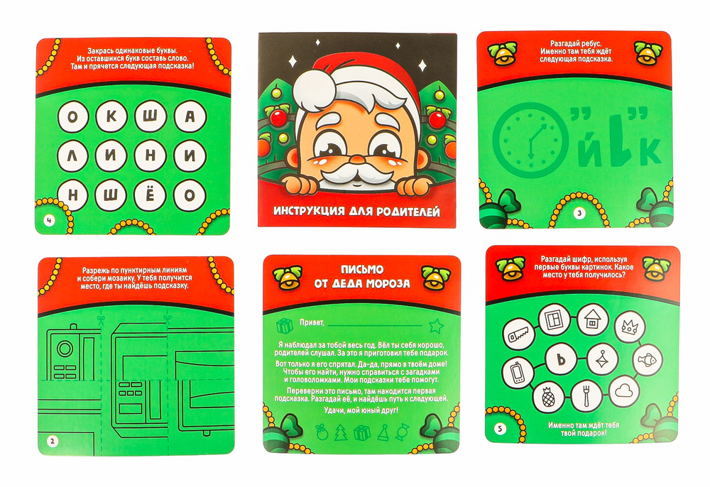 Каждый ребёнок хочет получить подарок на Новый год. С вашей помощью Дед Мороз устроит для него настоящий квест с загадками и шифрами.