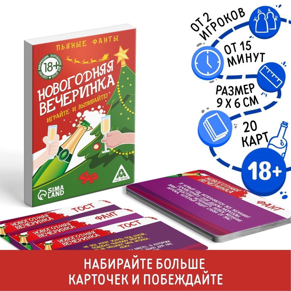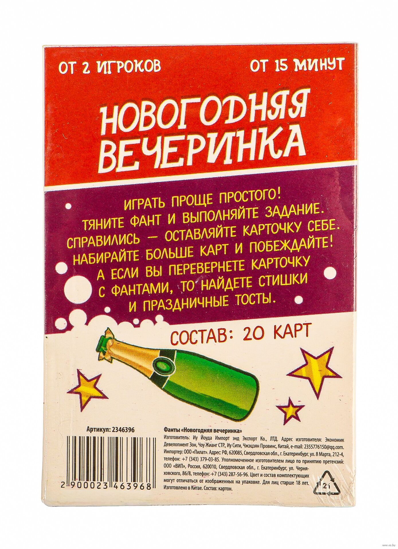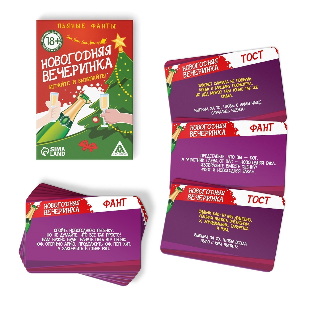 Набирайте больше карточек и побеждайте. А если вы перевернете фант, то найдёте стишки и праздничные тосты.