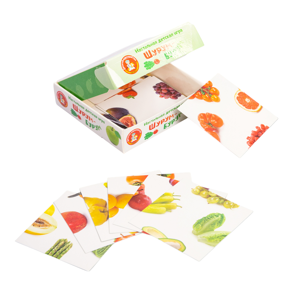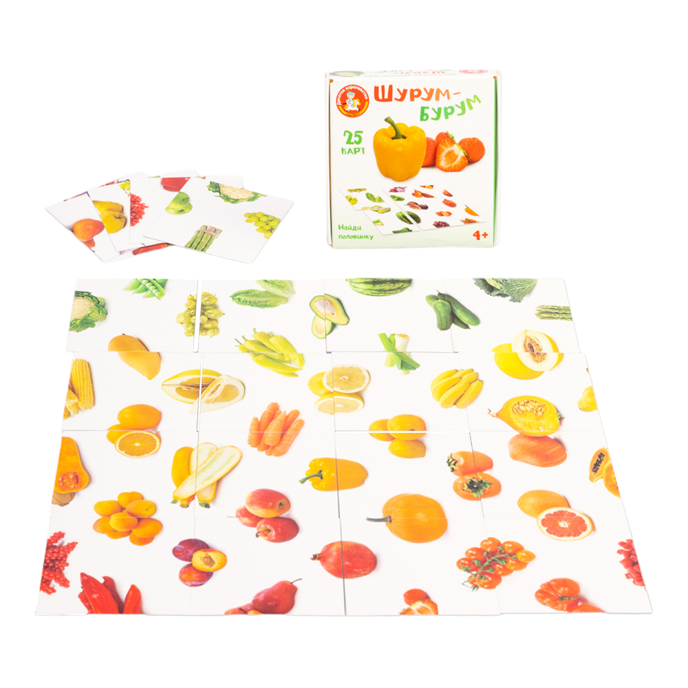 Настольная игра для детей "Шурум-Бурум. Найди половинку" (фрукты, овощи) – это игра для детей, с помощью которой ребенок интересно и с пользой проведет время. Небольшой формат игры и позволяет брать игру в дорогу или в гости.