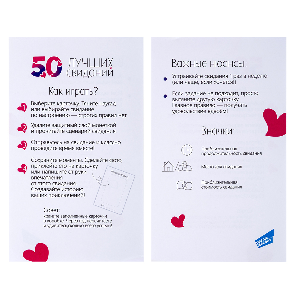Игра, которая подходит для молодых пар и для уже состоявшихся семей: в ней вам предложат 50 уникальных свиданий на любой вкус, бюджет и время.