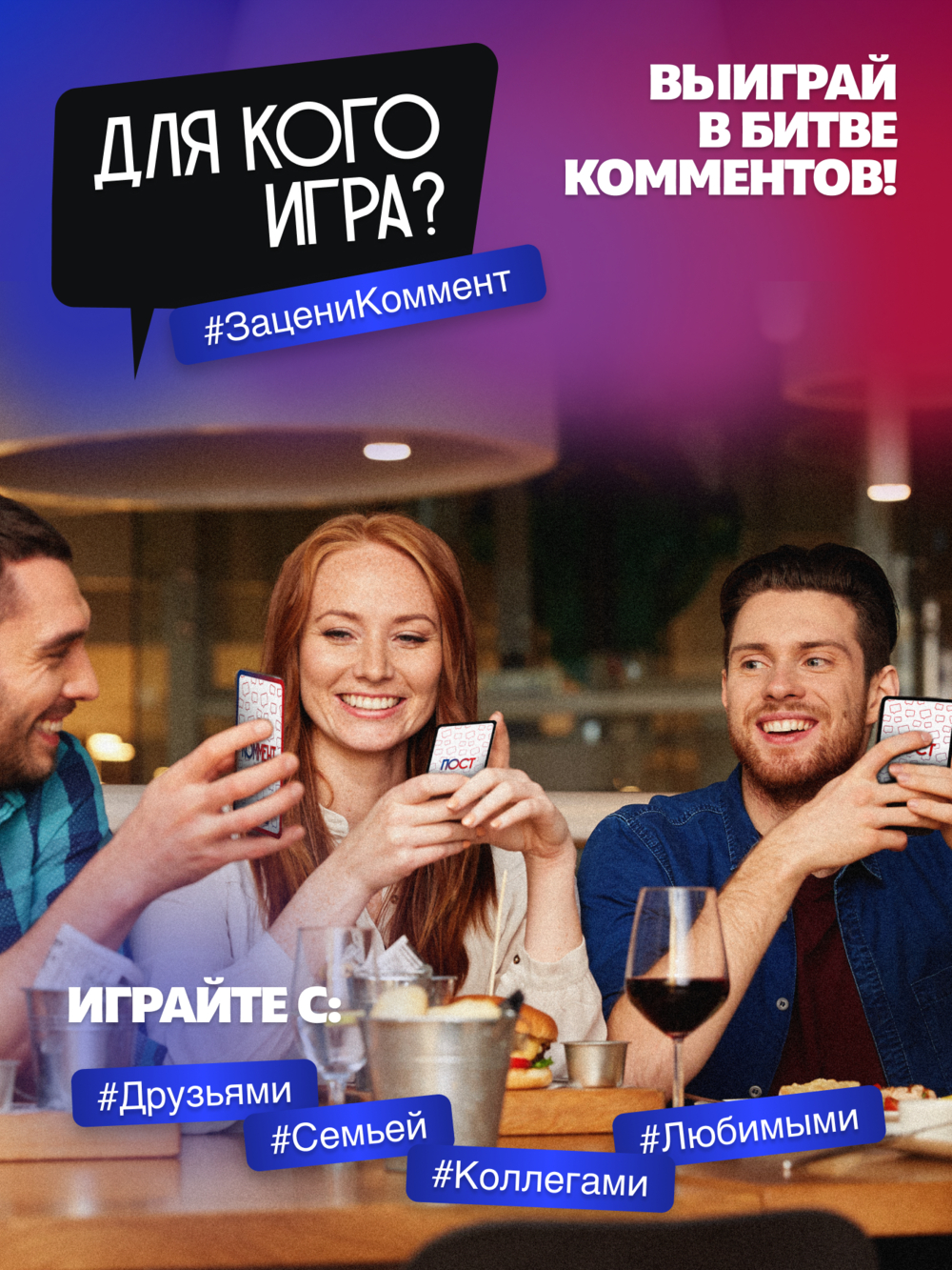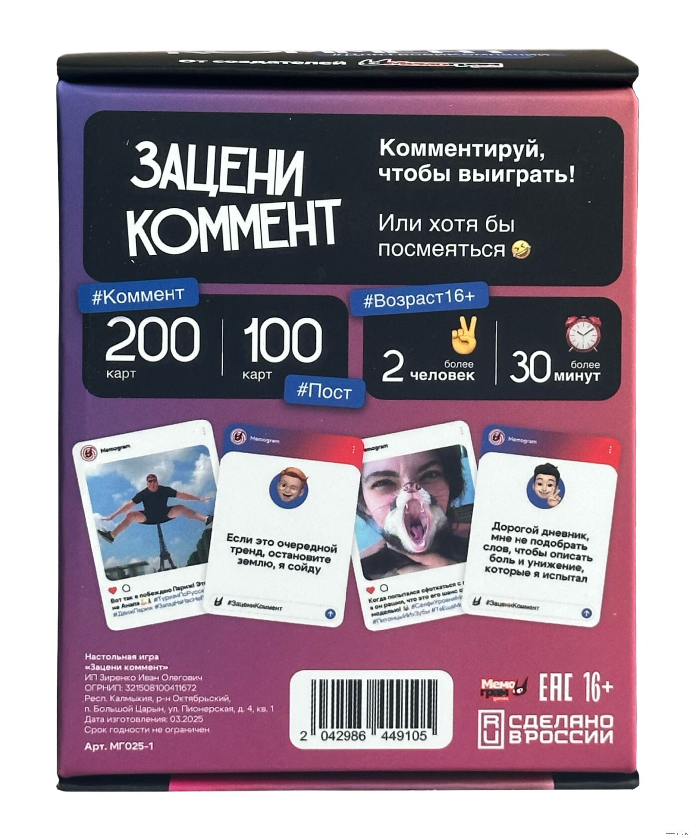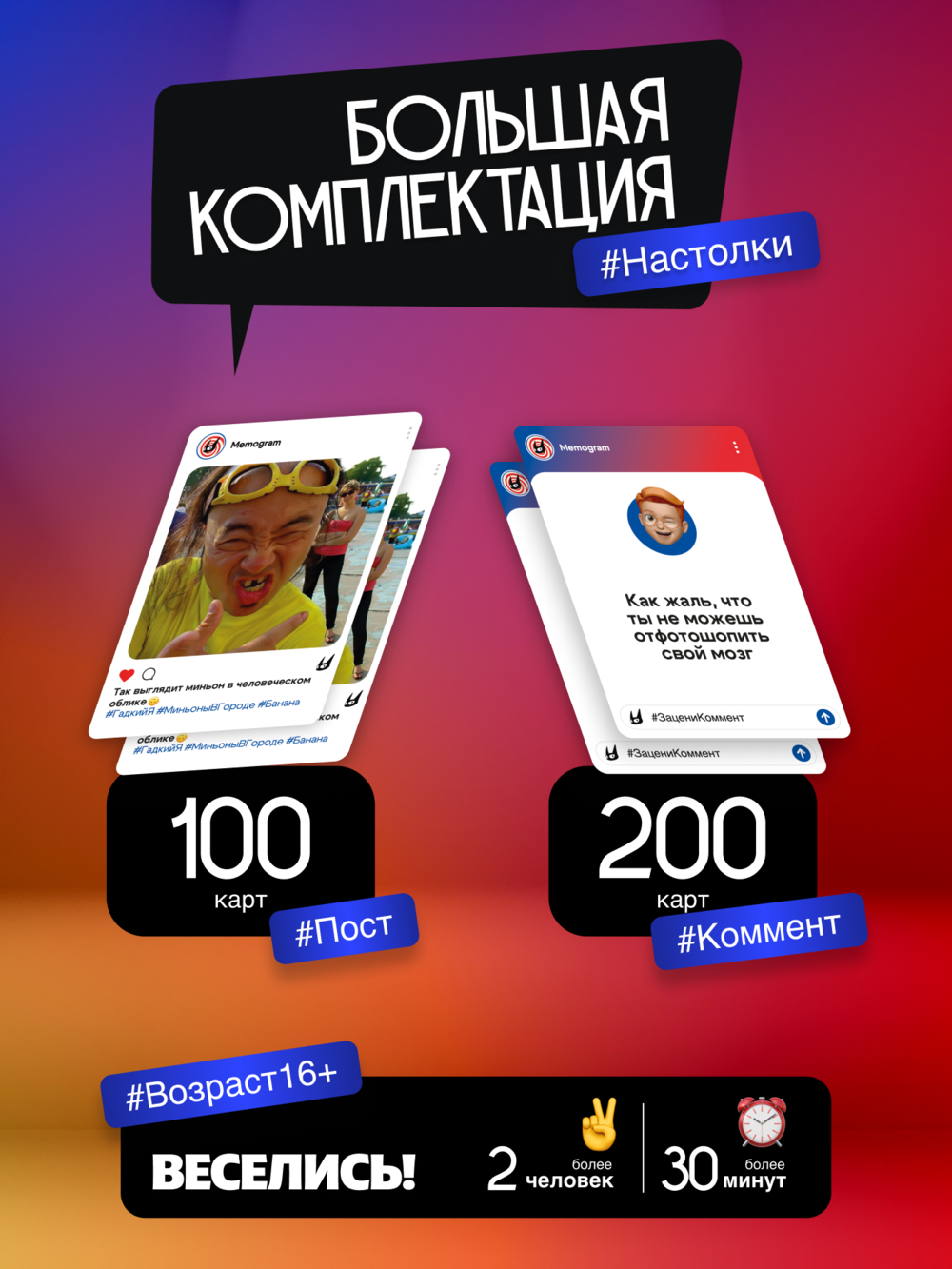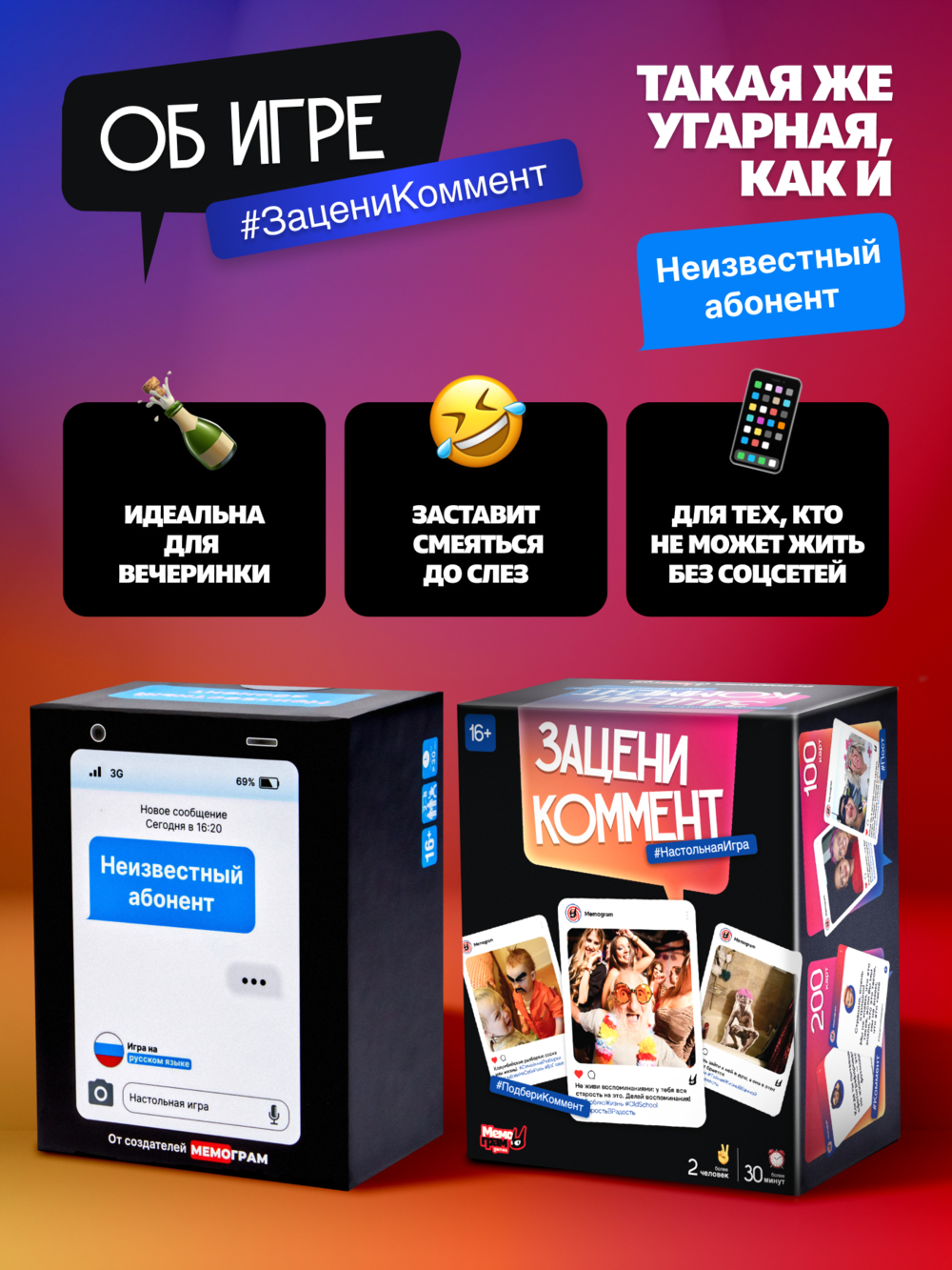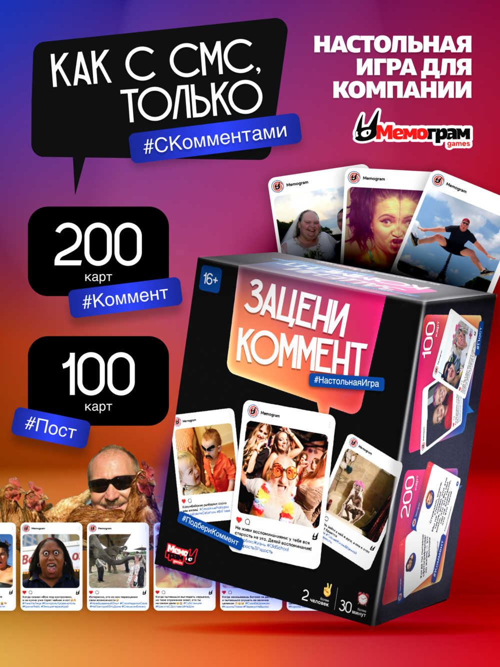 Акулам соцсетей – приготовиться! Улётная вечериночная игра "Зацени коммент" предлагает заняться любимым делом – комментированием постов-картинок. А рандом сделает это занятие ещё веселее.