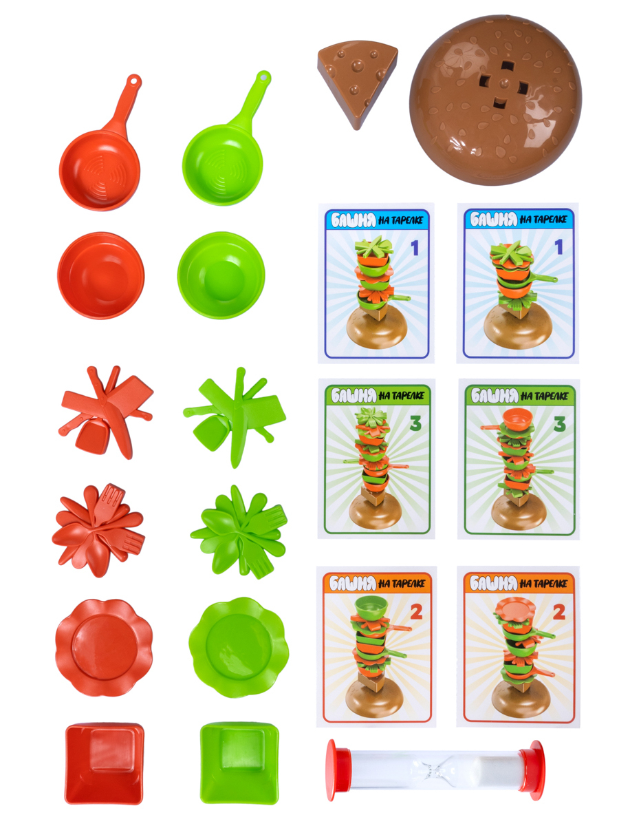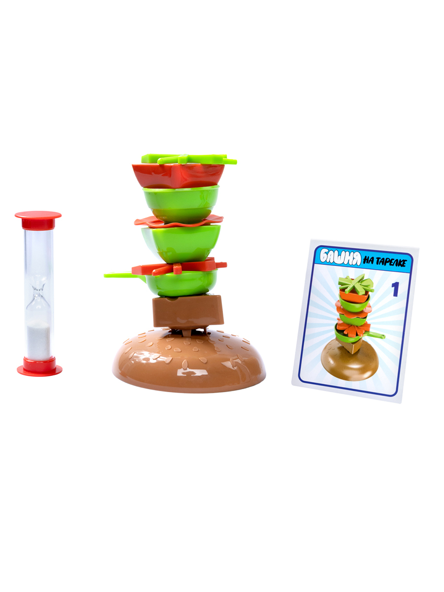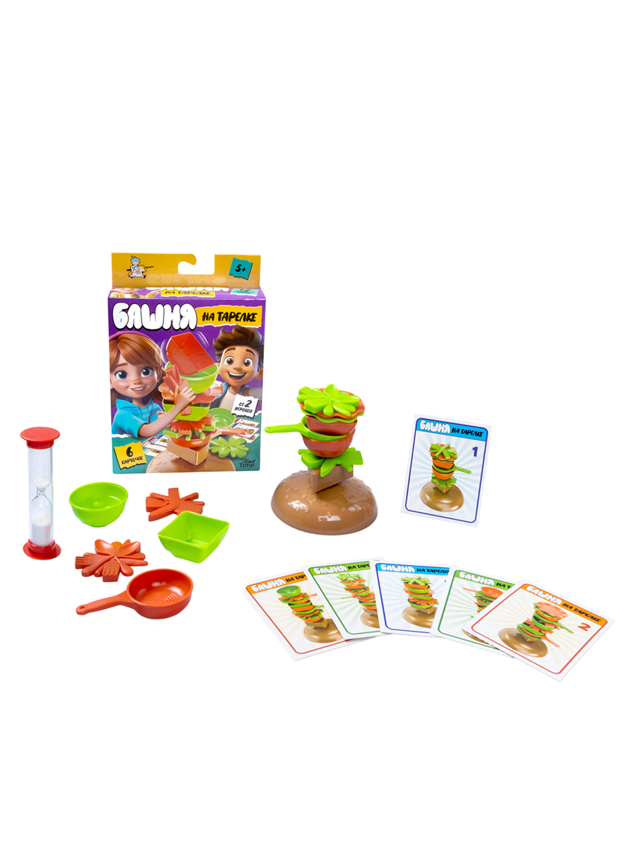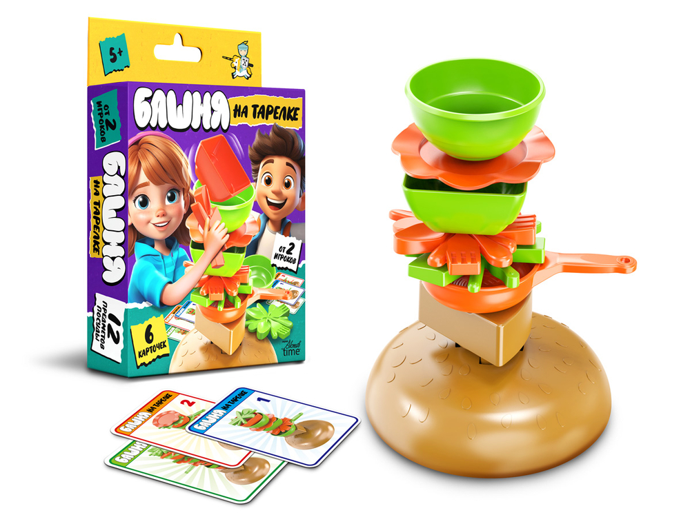 Настольная игра "Башня на тарелке" – это захватывающая игра на ловкость рук, скорость реакции и стратегическое мышление, превращающая обычную игру в настоящее соревнование! Готовы ли вы принять вызов и построить самую высокую и устойчивую башню из еды и посуды?