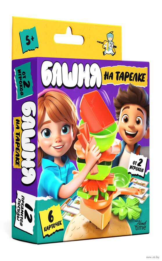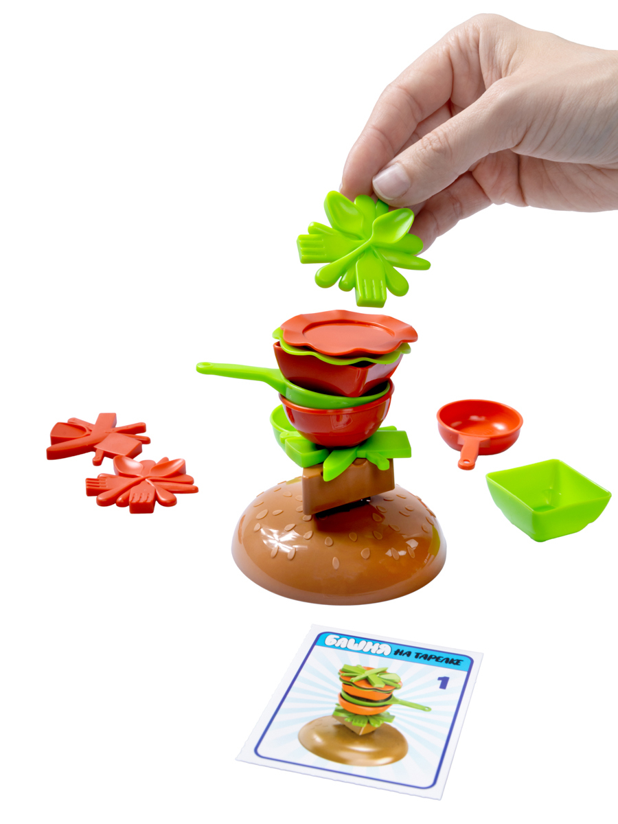 В этой веселой и динамичной игре ваша задача – воссоздать кулинарные шедевры, изображенные на карточках, балансируя тарелками, ложками и конечно же, аппетитными кусочками еды. Но будьте осторожны! Башня должна быть построена точно так, как показано на карточке, и не должна рухнуть до того, как истечет время песочных часов. Каждая успешно завершенная башня приносит вам победные очки, и чем больше карточек соберете, тем ближе победа!