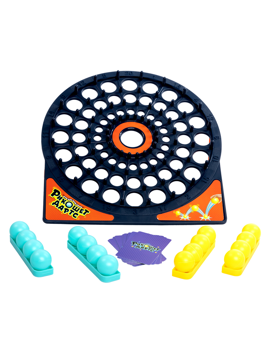 Настольная игра "Рикошет Дартс" – это динамичная и увлекательная настольная игра на меткость и стратегическое мышление, где каждый бросок может стать ключом к победе. Погрузитесь в мир геометрических узоров и непредсказуемых отскоков, чтобы первым собрать три карты заданий и объявить себя мастером рикошета!