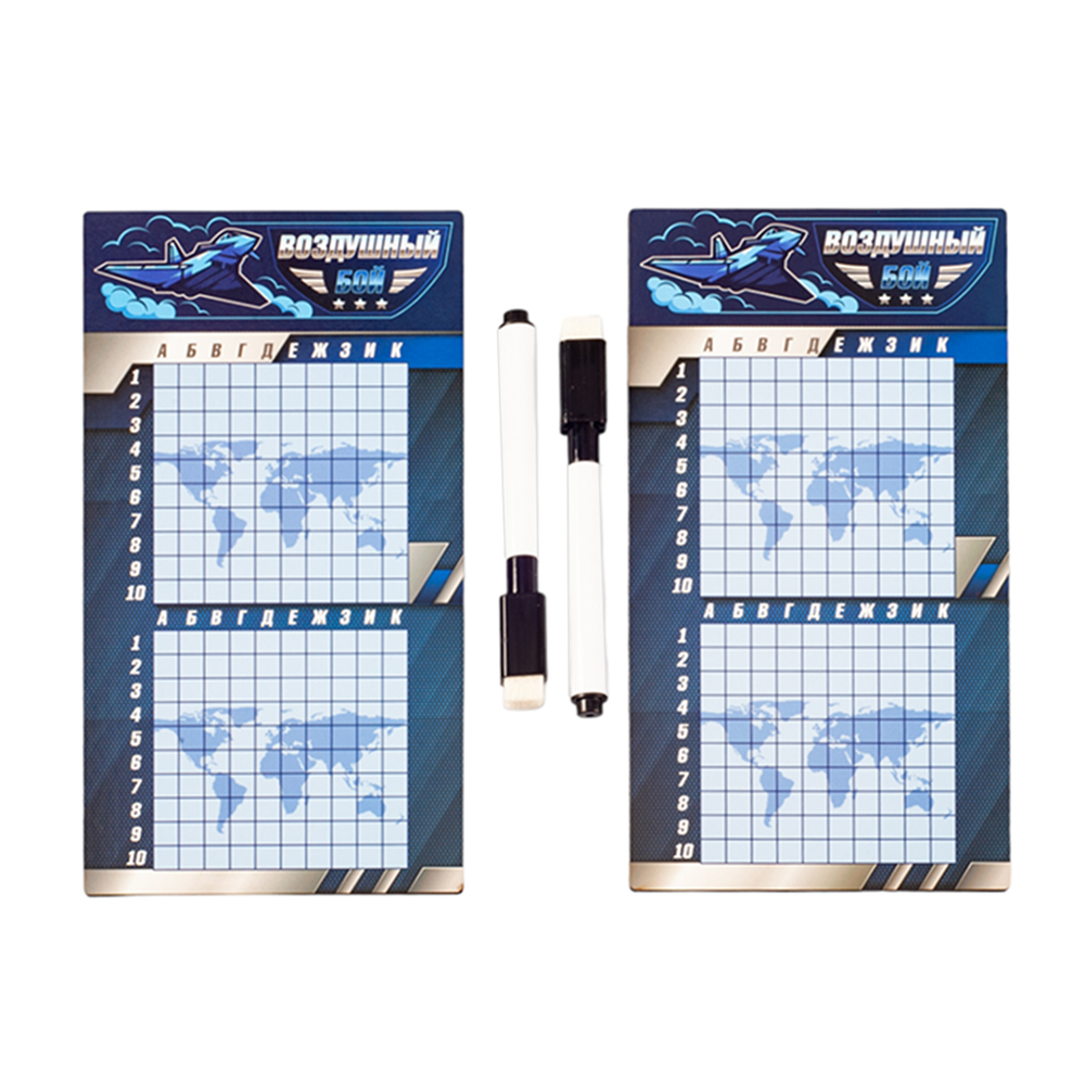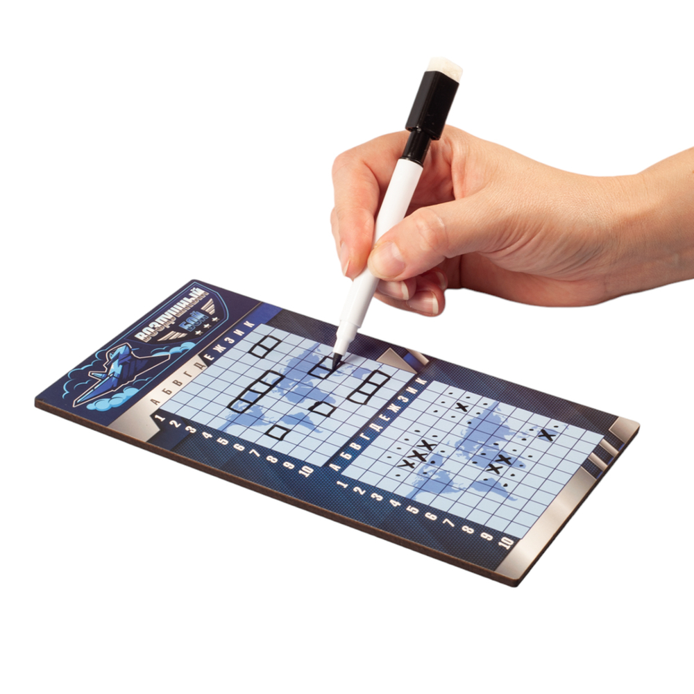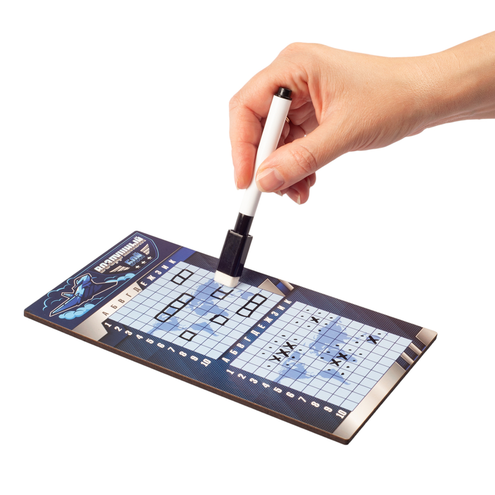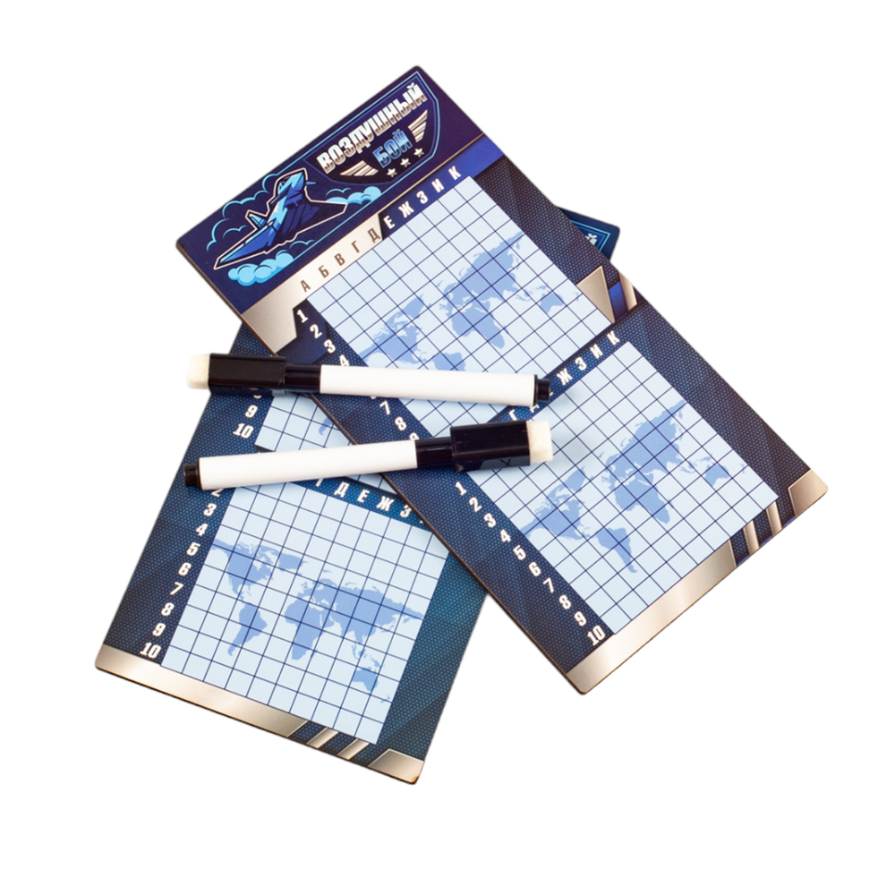 Данная настольная игра "Воздушный бой" с маркерами – это дорожный вариант стратегических игр, представленных в интернет-магазине. Специальное покрытие игрового поля позволяет многократно использовать его, т.к. маркер легко стирается. Стерка находится на колпачке маркера.