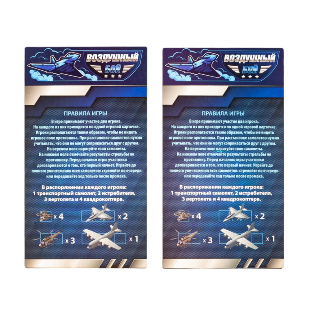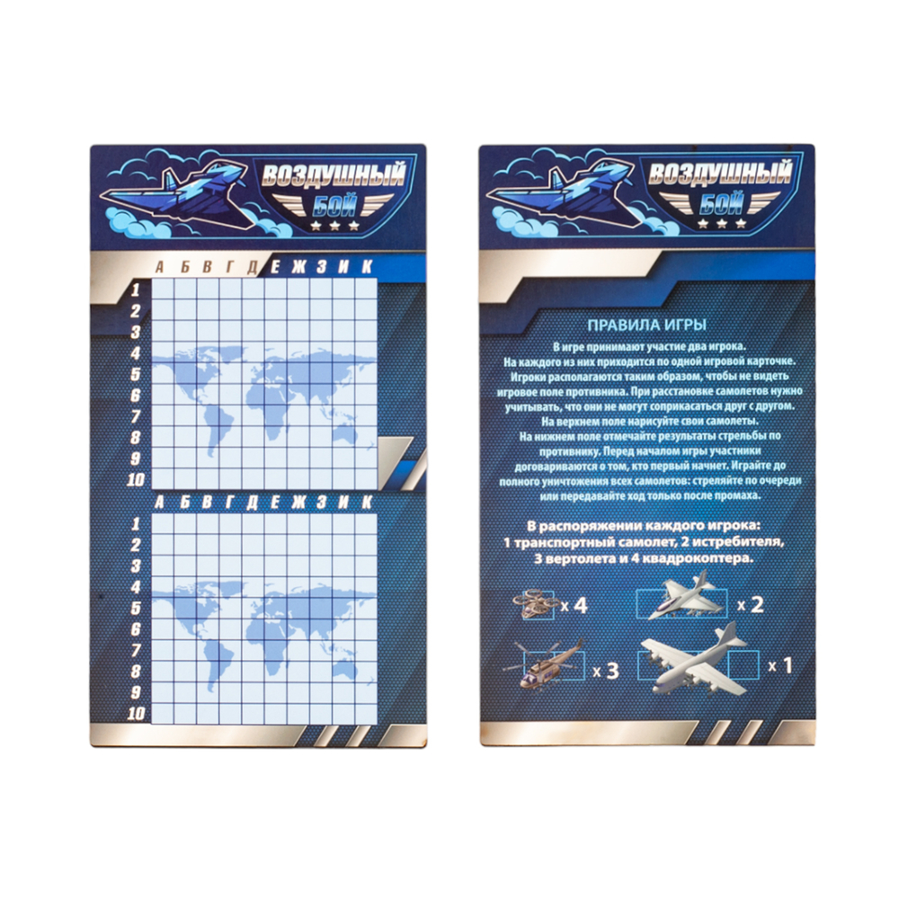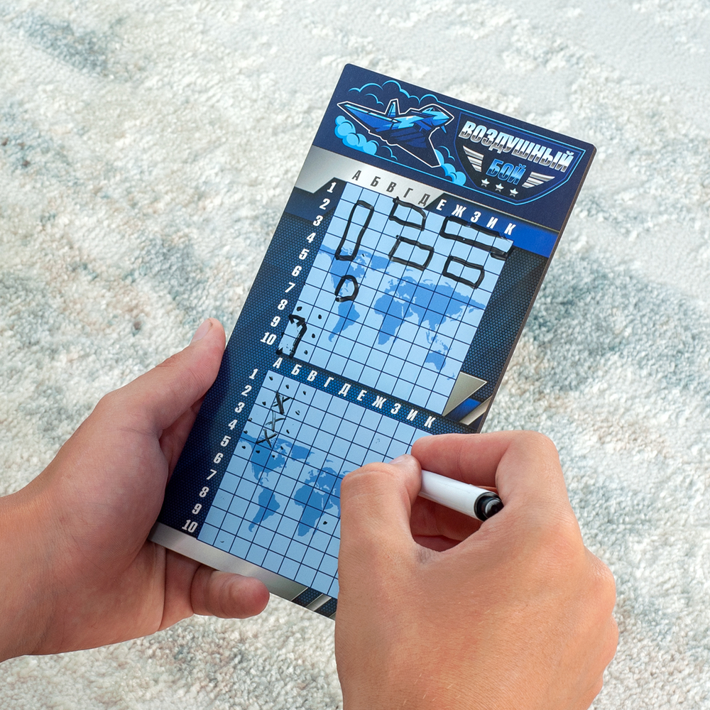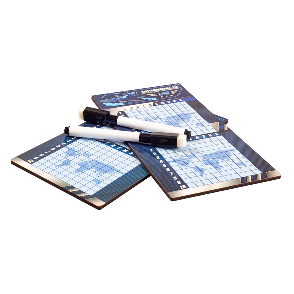 Данная настольная игра "Воздушный бой" с маркерами – это дорожный вариант стратегических игр, представленных в интернет-магазине. Специальное покрытие игрового поля позволяет многократно использовать его, т.к. маркер легко стирается. Стерка находится на колпачке маркера.