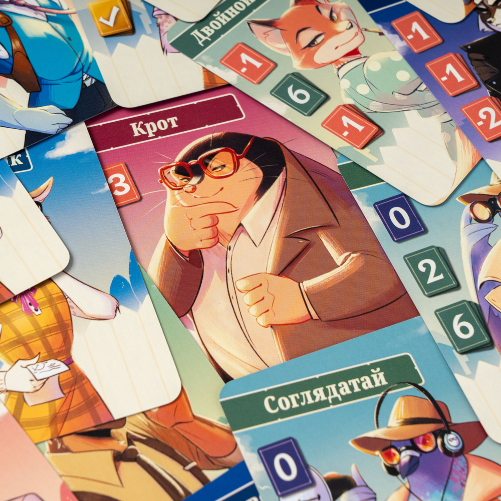 Внедриться в тайную жизнь благополучного района будет особенно приятно благодаря стильным иллюстрациям. Герои – антропоморфные животные – вдохновлены персонажами известных сериалов и кино. На картах вы встретите как собирательные образы, так и конкретных героев. Например, одну особенно отчаянную домохозяйку. Несмотря на то, что большинство персонажей встречаются в колоде несколько раз, у каждой копии своё уникальное изображение.