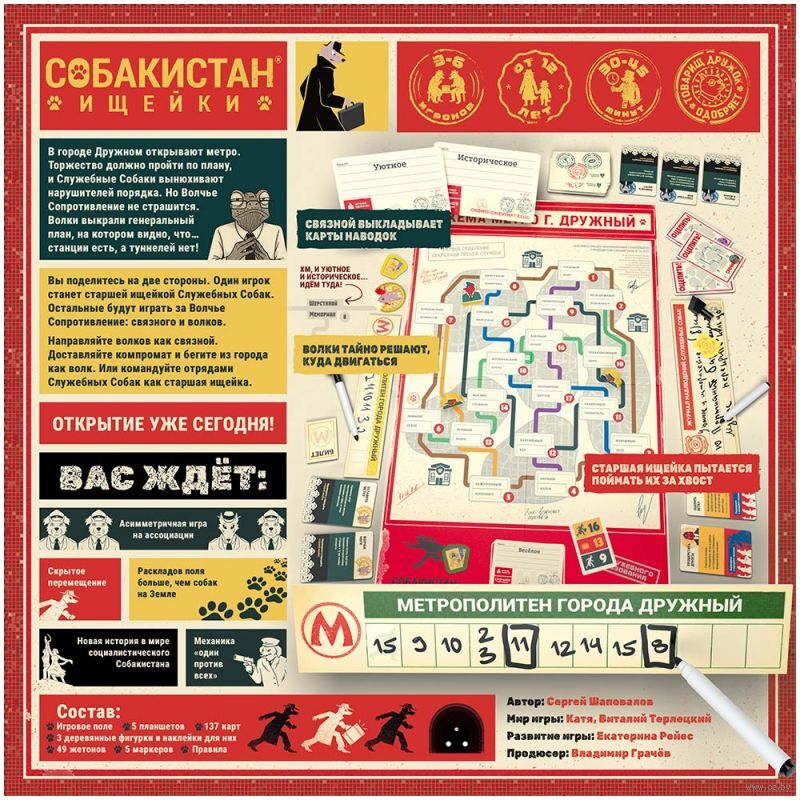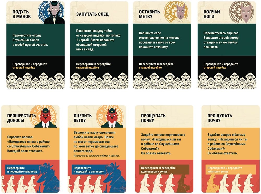 Вы поделитесь на две стороны. Один игрок станет старшей ищейкой Служебных Собак. Остальные будут играть за Волчье Сопротивление: связного и волков. Направляйте волков как связной. Доставляйте компромат и бегите из города как волк. Или командуйте отрядами Служебных Собак как старшая ищейка.