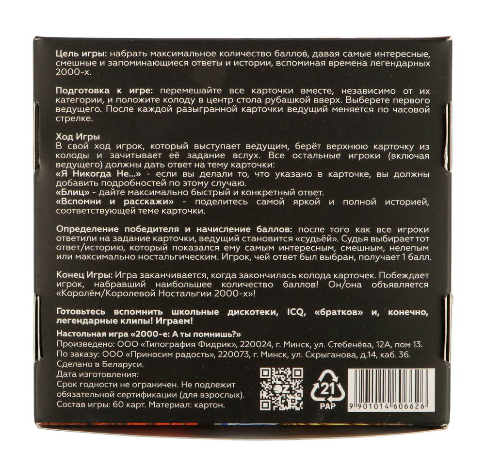 Эта компанейская игра создана, чтобы поднять на поверхность самые неловкие, смешные и культовые моменты из твоих нулевых. Мы будем говорить о клипах, которые не выходили из ротации, о школьных легендах и о том, что ты никогда не сделал (или сделал!) в своей юности.