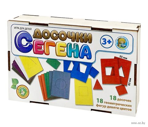 Занятия с развивающей игрой «Досочки Сегена» № 1 способствует формированию представлений о геометрических фигурах и основных цветах палитры, развивают мелкую моторику, зрительно-двигательную координацию и логическое мышление, а также повышают устойчивость внимания и помогают освоить понятия "часть" и "целое".
