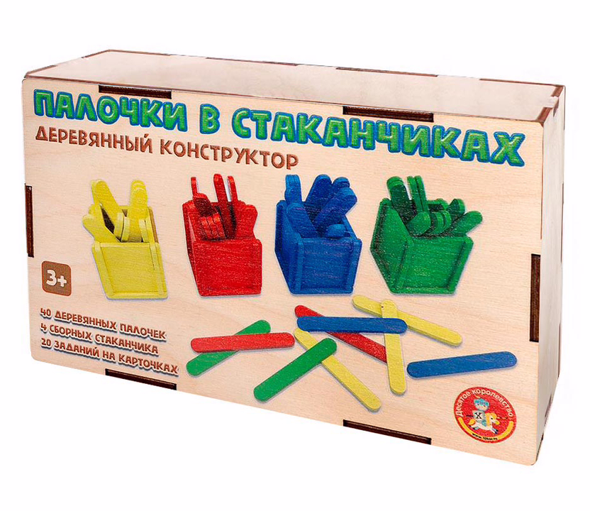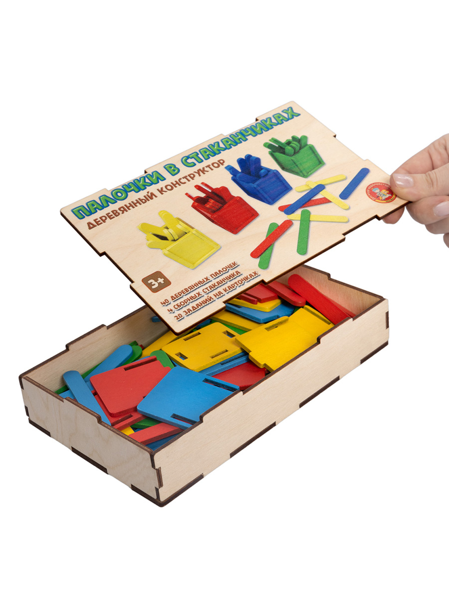 Развивающая деревянная игра для детей "Палочки в стаканчиках" – это деревянный конструктор для малышей с логическими заданиями. Элементы и коробка для хранения изготовлены из высококачественной экологичной березовой фанеры.