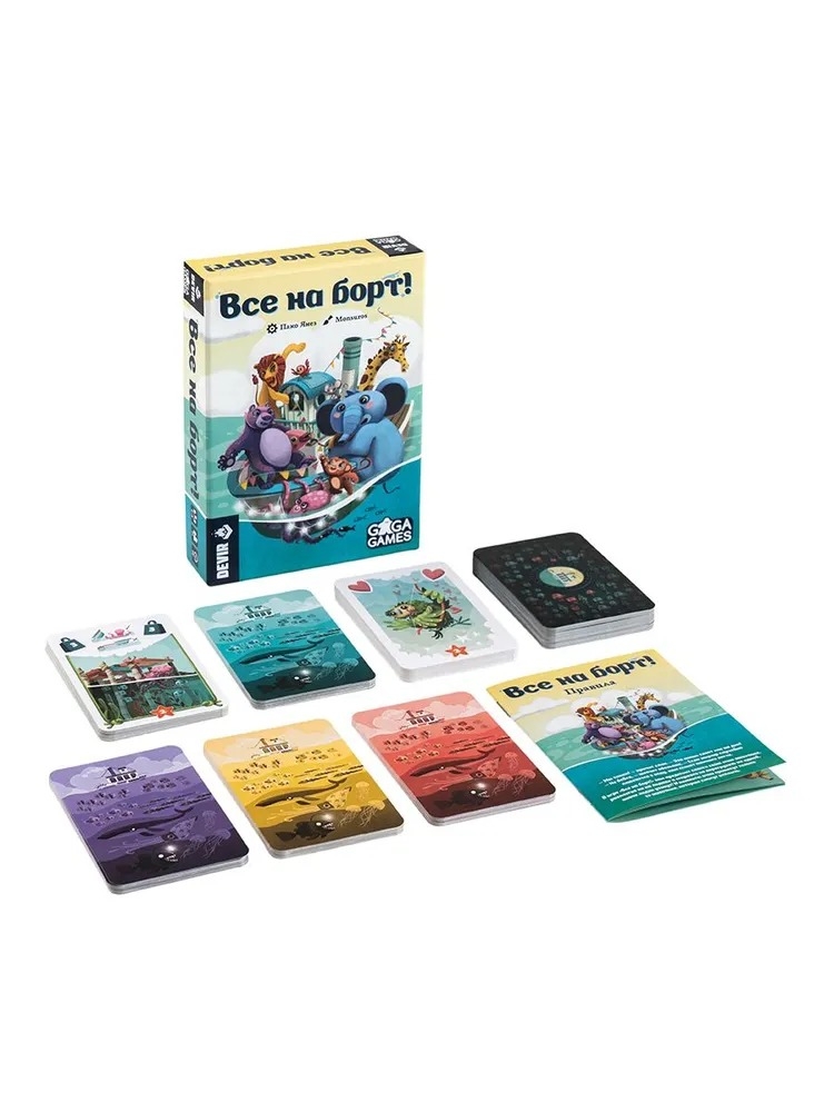 "Все на борт!" – это быстрая и компактная, но безумно азартная и весёлая настольная игра для компании и всей семьи, в ходе которой вам предстоит заняться спасением всевозможных животных, стараясь разместить их по лодкам так, чтобы не было перевеса или различных инцидентов. Грузоподъемность каждой лодки в партиях этой карточной настолки на логику ограничена, так что придется поломать голову над тем, каких же животных туда уместить и как получить за это побольше победных очков.
