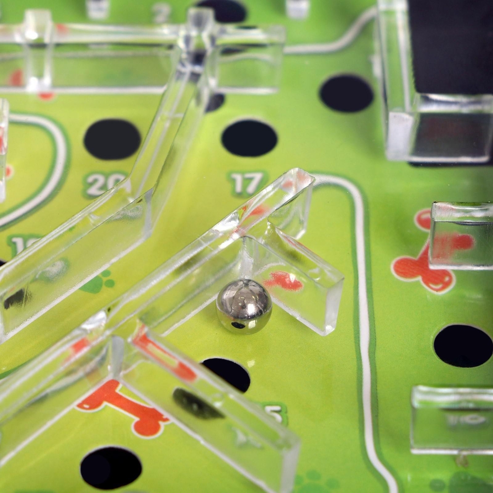 Ваша задача – пройти шариком весь лабиринт, следуя стрелке с цифрами. Будьте внимательны! На поле расположено множество лунок, которые желают захватить ваш шарик. Наклоняйте игру в разные стороны, чтобы песик дошёл до своей косточки. Иначе вам придётся начать свой путь заново!