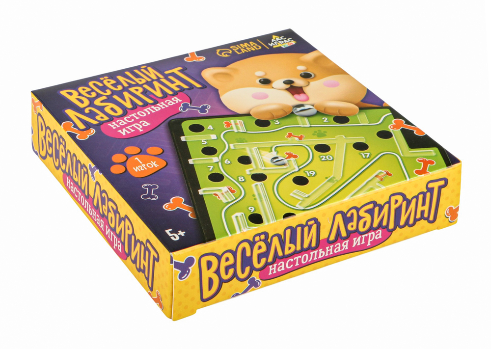 Настольная игра "Весёлый лабиринт" рекомендована детям старше 5 лет и рассчитана на 1 игрока. Вы можете по очереди устраивать соревнования, кто быстрее дойдёт до финиша.