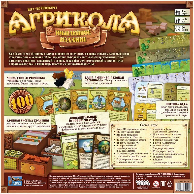 Уже более 15 лет "Агрикола" радует игроков по всему миру, по праву считаясь классикой среди стратегических семейных игр! Вам предстоит обустроить быт молодой крестьянской семьи – разводите животных, выращивайте овощи, украшайте дом, изготавливайте орудия труда и продолжайте род. В конце игры победит самая зажиточная семья.
