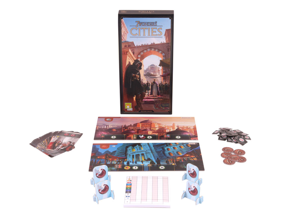 Дополнение "Города" вводят новые правила в базовую игру "7 Чудес", но условия победы остаются без изменений. Это дополнение также предлагает вариант для игр в командах (с 4 или 6 игроками). Оно полностью совместимо со 2-м изданием 7 чудес (7 Wonders), в нём убраны карты лидеров и карты гильдий. Добавлены 15 карт с новыми эффектами, монеты достоинством «6», жетоны дипломатии получили подставки для вертикального размещения на планшете.