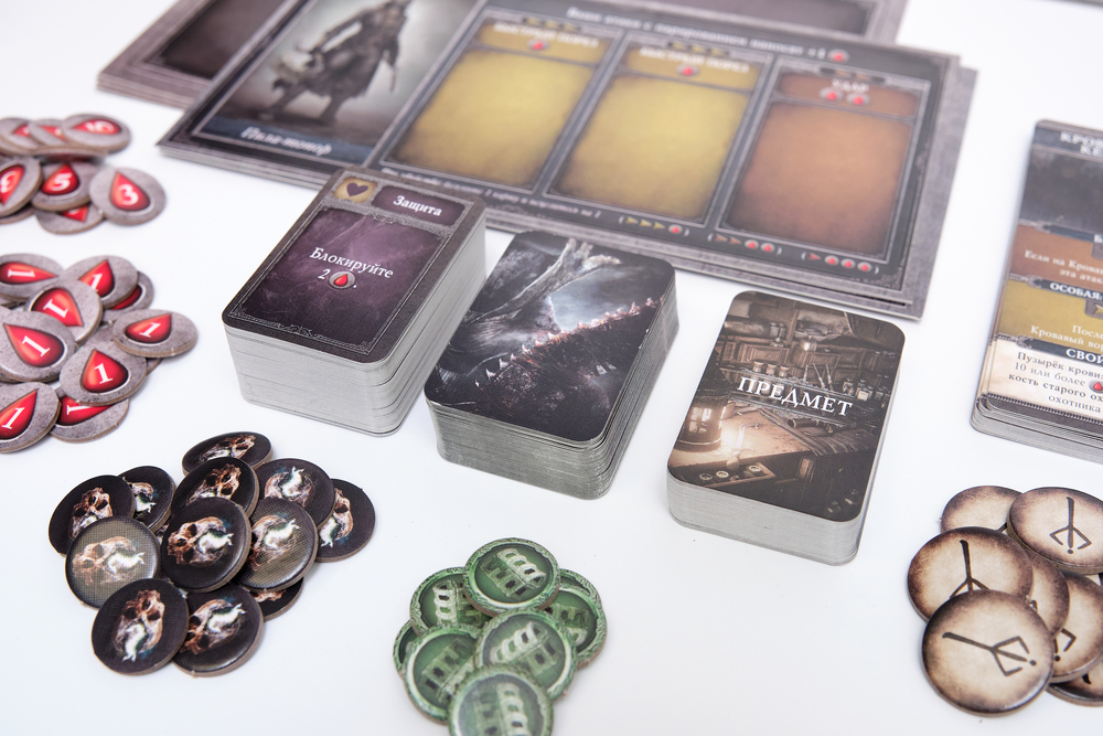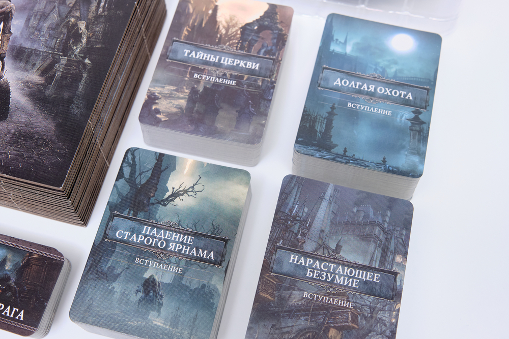 Игра основана на механике колодостроения и состоит из 4 кампаний по 3 главы в каждой; каждая глава – это 1 игровая партия. В ходе кампаний вас ждут разнообразные сюжетные события, ваши охотники станут опытнее и сильнее, а вы раскроете для себя необычайную историю Ярнама. Если выживете, конечно.