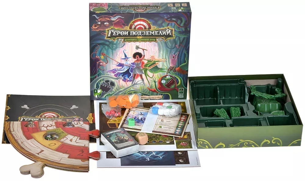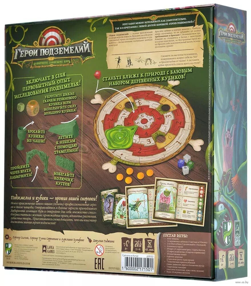 Ваша группа отважных героев застряла в опасных джунглях Лабиринта зловещих бурь. Сможете ли вы выжить среди коварных порождений природы? Благодаря обычным шестигранным кубикам и слегка изменённому полю-мишени это идеальный старт для начинающих героев подземелий!