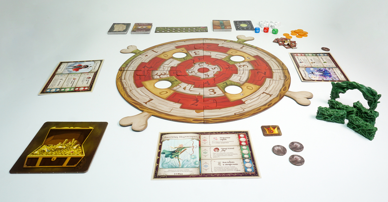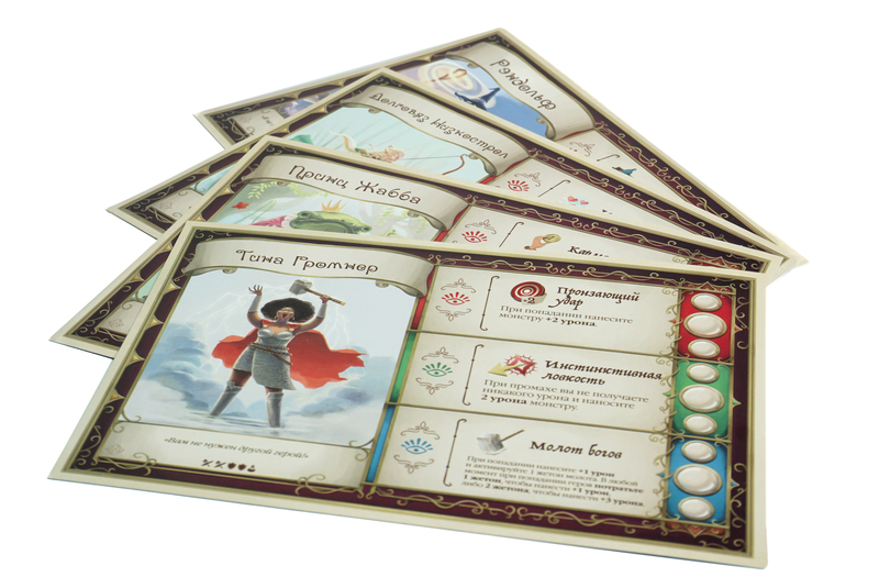 "Герои подземелий" – полная приключений и юмора кооперативная игра на ловкость. Вы берёте на себя роли самозваных героев, выступающих единым отрядом. Ваш путь пролегает через подземелье: нужно исследовать его многочисленные залы и противостоять бесконечным полчищам злобных монстров, бросая кубики в мишень изощрёнными способами.