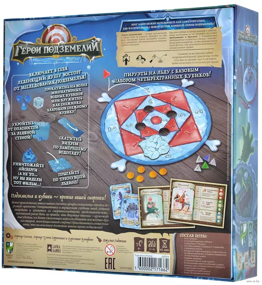 Проскользните вместе с вашими героями в ледяные залы Замка ужасающих морозов – студёной крепости, где царит морозный ад! В вашем распоряжении будут суперскользящие кубики d4 и поле-мишень с квадратными секторами – вымораживающее сочетание!
