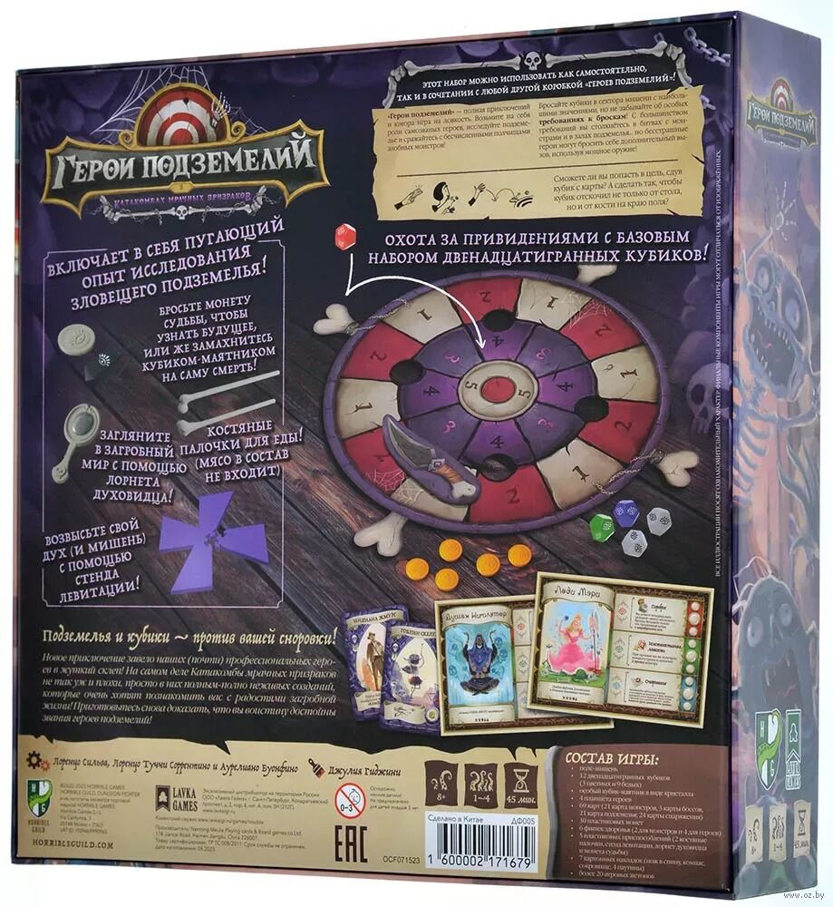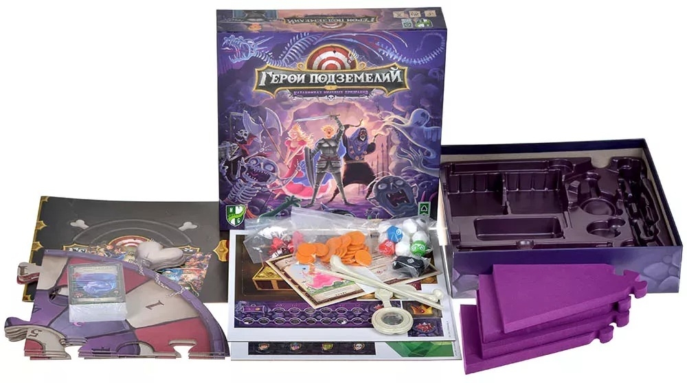 Это самостоятельная игра с теми же правилами, которую можно комбинировать с любой другой коробкой "Героев подземелий". В неё входит новый контент на загробную тематику и хитроумные приспособления, добавляющие разнообразия игровому процессу: костяные палочки, линза духов, паутины, кубик-маятник и многое другое.