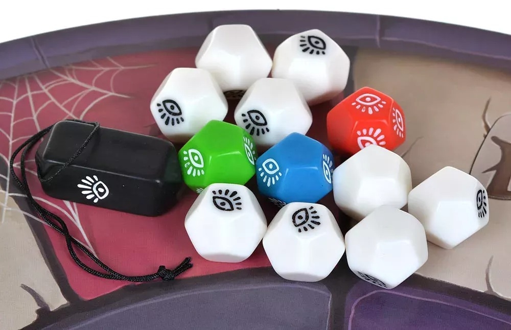 Спуститесь в Катакомбы мрачных призраков, исследуйте некрополь с привидениями и постарайтесь избежать погибели от рук нежити! Примите участие в зловещем испытании, стараясь попасть в цель легко перекатывающимися кубиками d12, плоским жетоном судьбы и качающимся на верёвочке маятником.