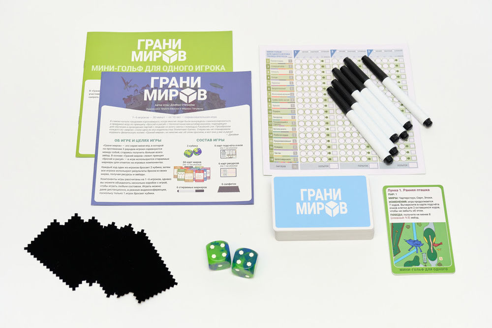 В основе "Грани миров" лежит принцип "бросай и рисуй" – в игре используются стираемые маркеры для отметок на игровых компонентах. Каждый ход любой игрок 2 кубика, затем все игроки используют результаты броска в своих мирах, получая ресурсы и звезды.