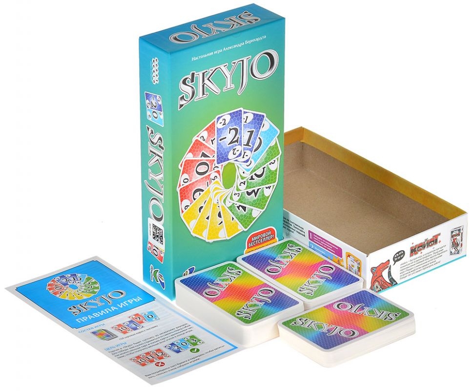 Настольный хит "Skyjo" врывается в уютные вечера! В ваших руках идеальная игра для любой вечеринки или семейных посиделок: правила можно освоить за минуту, а баланс планирования и удачи покорит как опытного, так и начинающего игрока.