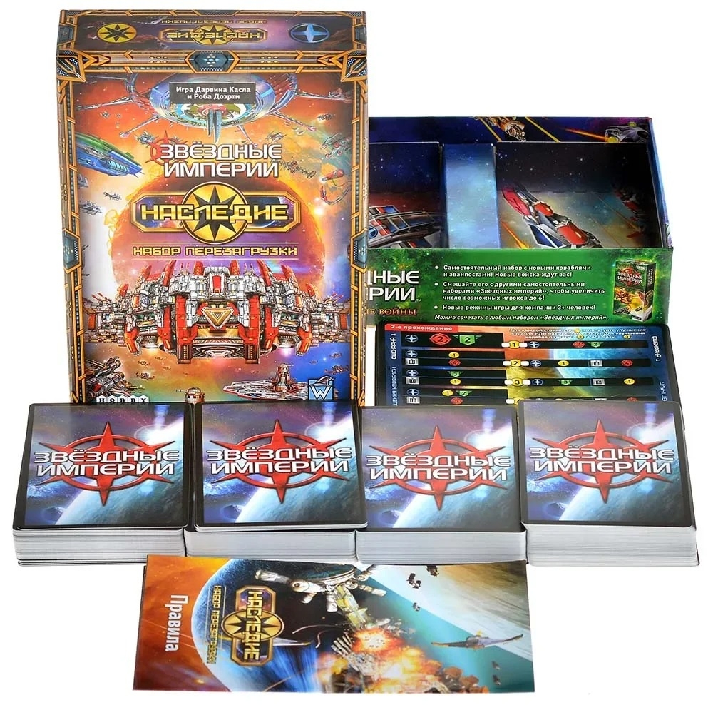 Дополнение "Звёздные империи: Наследие. Набор перезагрузки" содержит всё, что нужно, чтобы перепройти кампанию "Звёздных империй: Наследие", но теперь без наклеек. Набор позволяет окунуться в историю без лишних следов на картах, а если добавить стартовые наборы из любой другой коробки серии, можно сыграть по базовым правилам, но уже с совершенно новой торговой колодой. Это дополнение – идеальный способ открыть знакомую игру под новым углом и подарить себе свежий космический опыт!