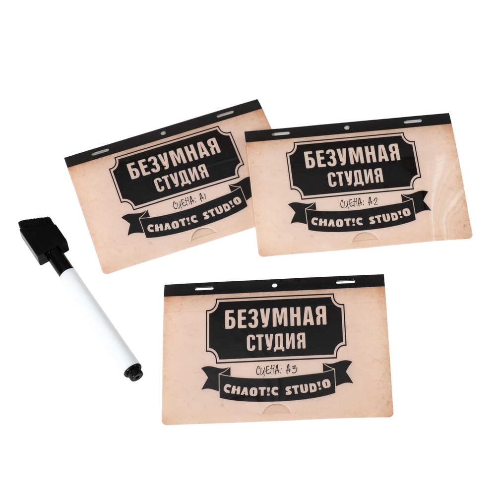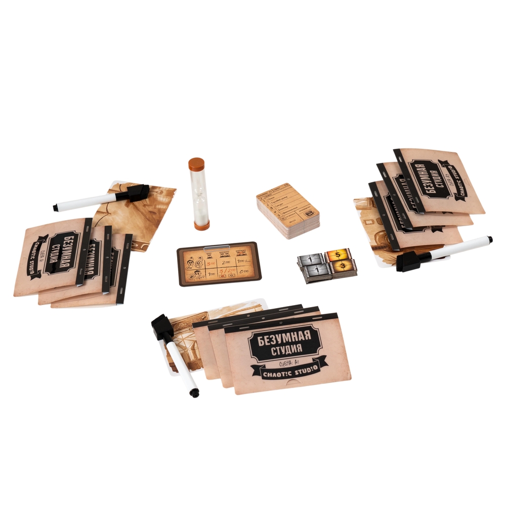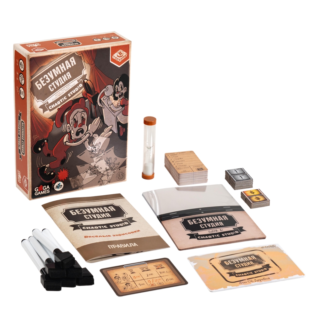 "Безумная Студия" – быстрая и немного сумасшедшая рисовательная игра для компании от 3 до 6 человек. Попробуйте себя в роли художника-аниматора и отгадайте, что изобразили ваши коллеги по цеху. На время! И по кусочкам! Что? Нет времени объяснять, хватайте маркеры и делайте раскадровку – в нашем мультфильме не хватает только вашего сюжета.