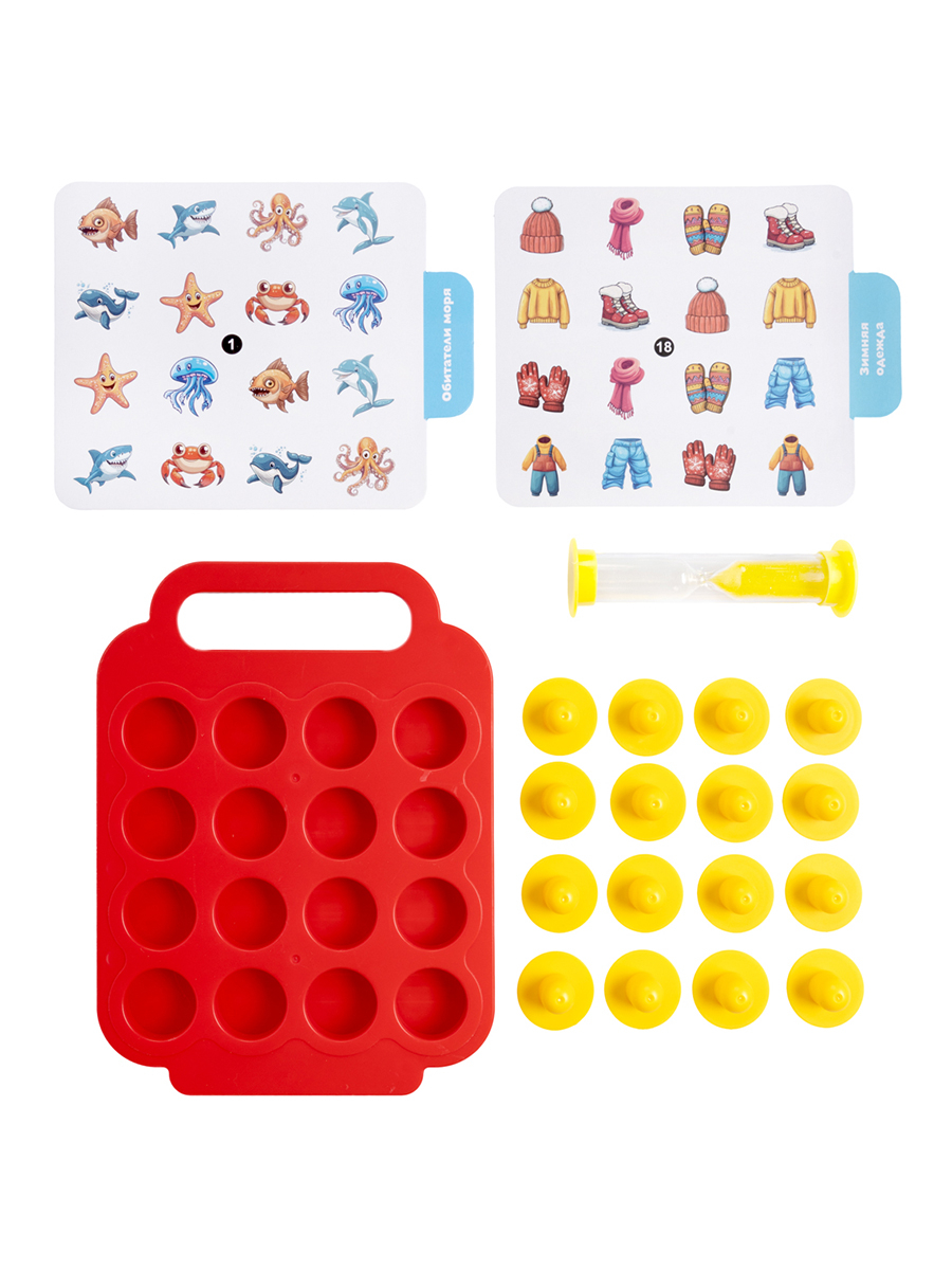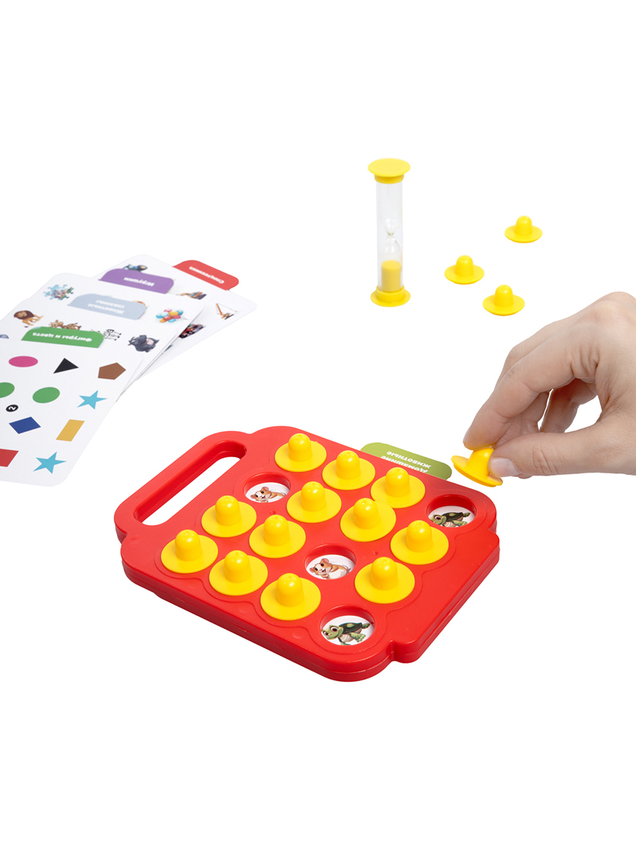 Суть игры проста, но от этого не менее захватывающая: разместите карточку на игровом поле, закройте все окошки крышками, запустите песочные часы и открывайте по две фишки, ищите совпадения, пока не истекло время. Если вам удалось найти пару с одинаковыми изображениями, забирайте фишки себе. Если нет – запомните расположение картинок и закройте их снова. Побеждает тот, кто соберет наибольшее количество фишек!