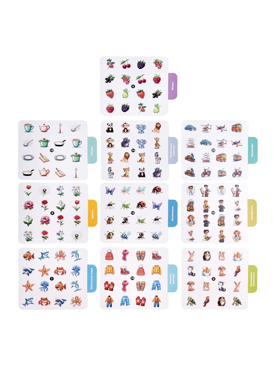 Играя, дети узнают новое о животных, растениях, предметах, цветах, формах и профессиях. Это отличный способ расширить словарный запас и развить познавательный интерес.