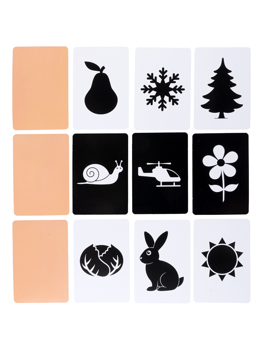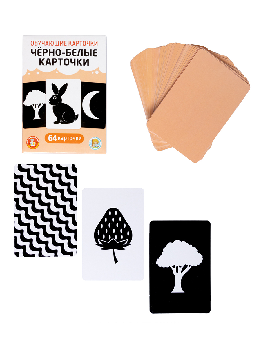 Черно-белые карточки – это первые карточки вашего малыша и ценный инструмент для стимуляции зрительной системы новорожденного. Контрастные изображения помогают развивать зрение, внимание и концентрацию уже с первых недель жизни. Обучающий набор включает в себя 64 картинки на разные темы: животные, предметы, формы и многое другое. Идеально подходит для совместных занятий и раннего развития малыша.