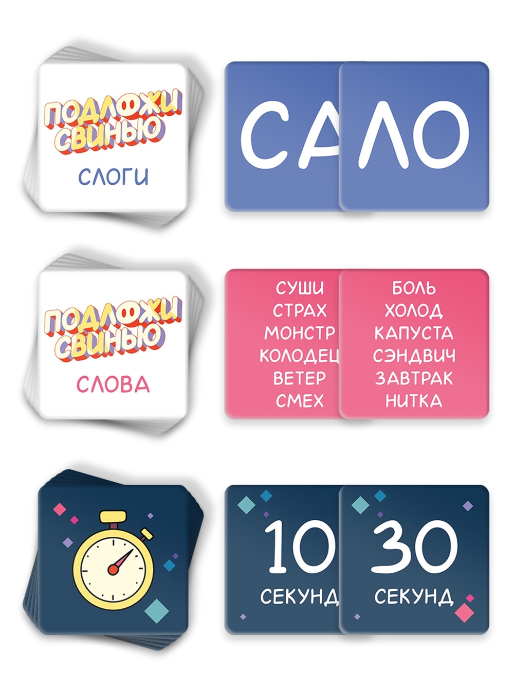 В третьем раунде необходимо постараться сделать так, чтобы свинья не оказалась на вашей стороне. Вытягивайте верхнюю карту со слогом и кладите её рядом с колодой лицевой стороной вверх. Игроки быстро и по очереди называют слово, начинающееся на данный слог, и передают фигурку свиньи сопернику. Повторяться нельзя.Раунд продолжается до тех пор, пока время не истечёт. Команда, на чьей стороне оказалась фигурка проигрывает этот раунд.