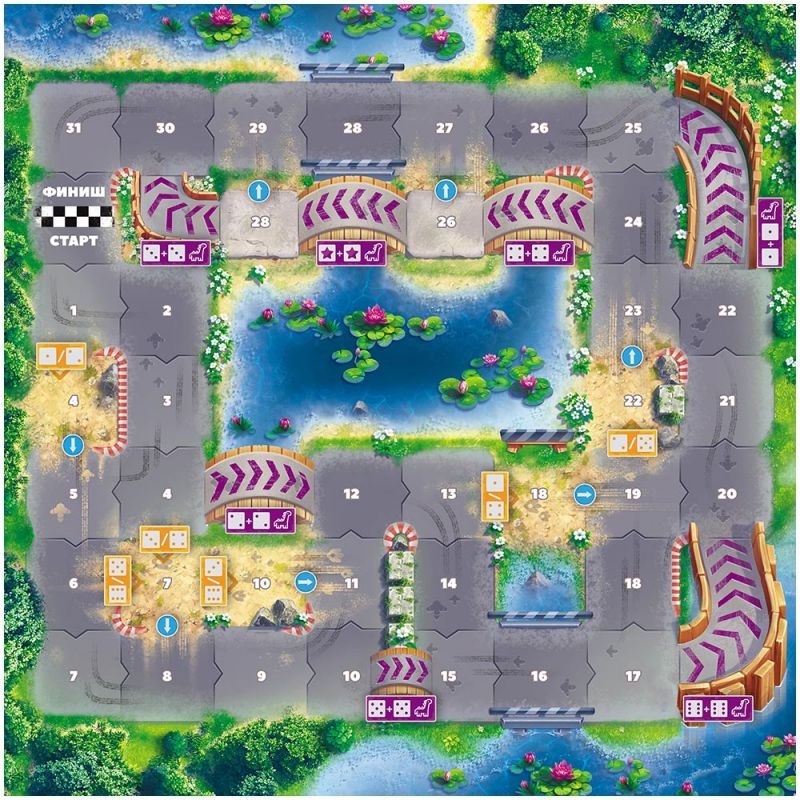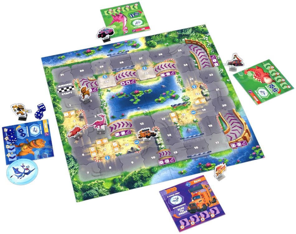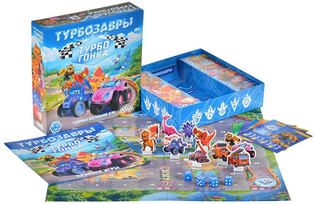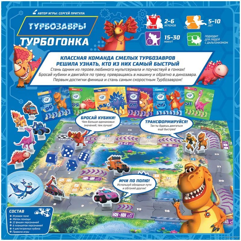 Классная команда смелых Турбозавров решила узнать, кто из них самый быстрый! Стань одним из героев любимого мультсериала и поучаствуй в гонках! Бросай кубики и двигайся по треку, превращаясь в машину и обратно в динозавра. Первым достигни финиша и стань самым скоростным Турбозавром!