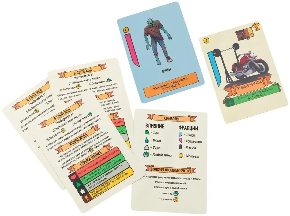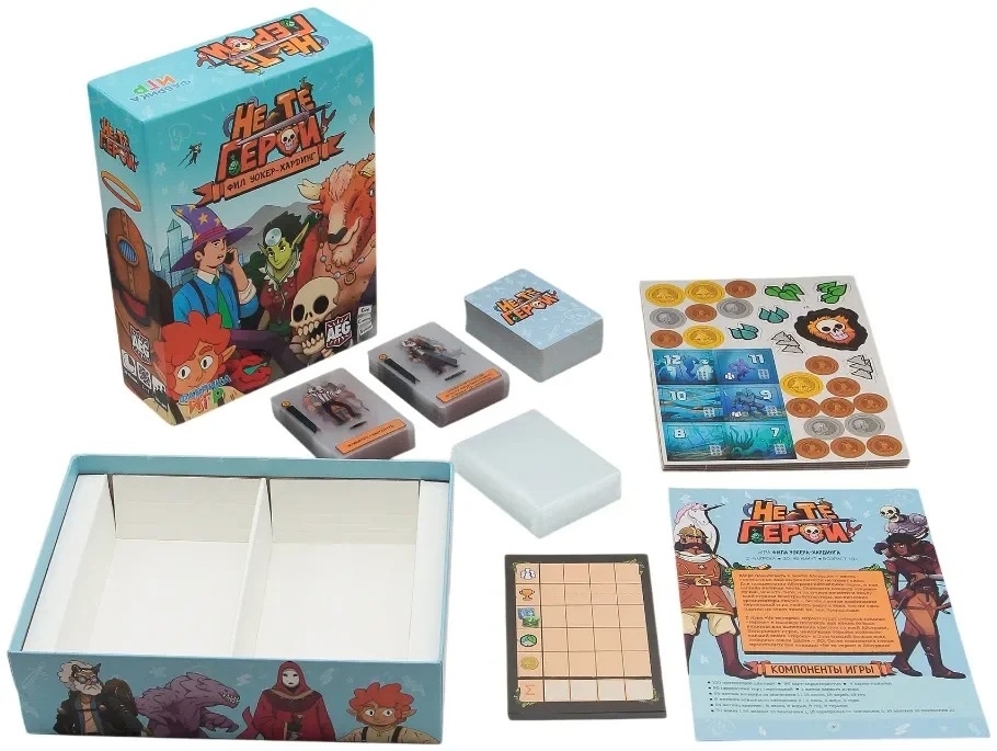 Простая в освоении, динамичная и невероятно разнообразная – так можно описать эту игру. В коробке – 96 прозрачных карт персонажей и 96 карт-характеристик с ярким фоном. Совмещайте их между собой, чтобы создать удивительных персонажей – Друида средних лет, Культиста с щупальцами или Рептилоида-картёжника.