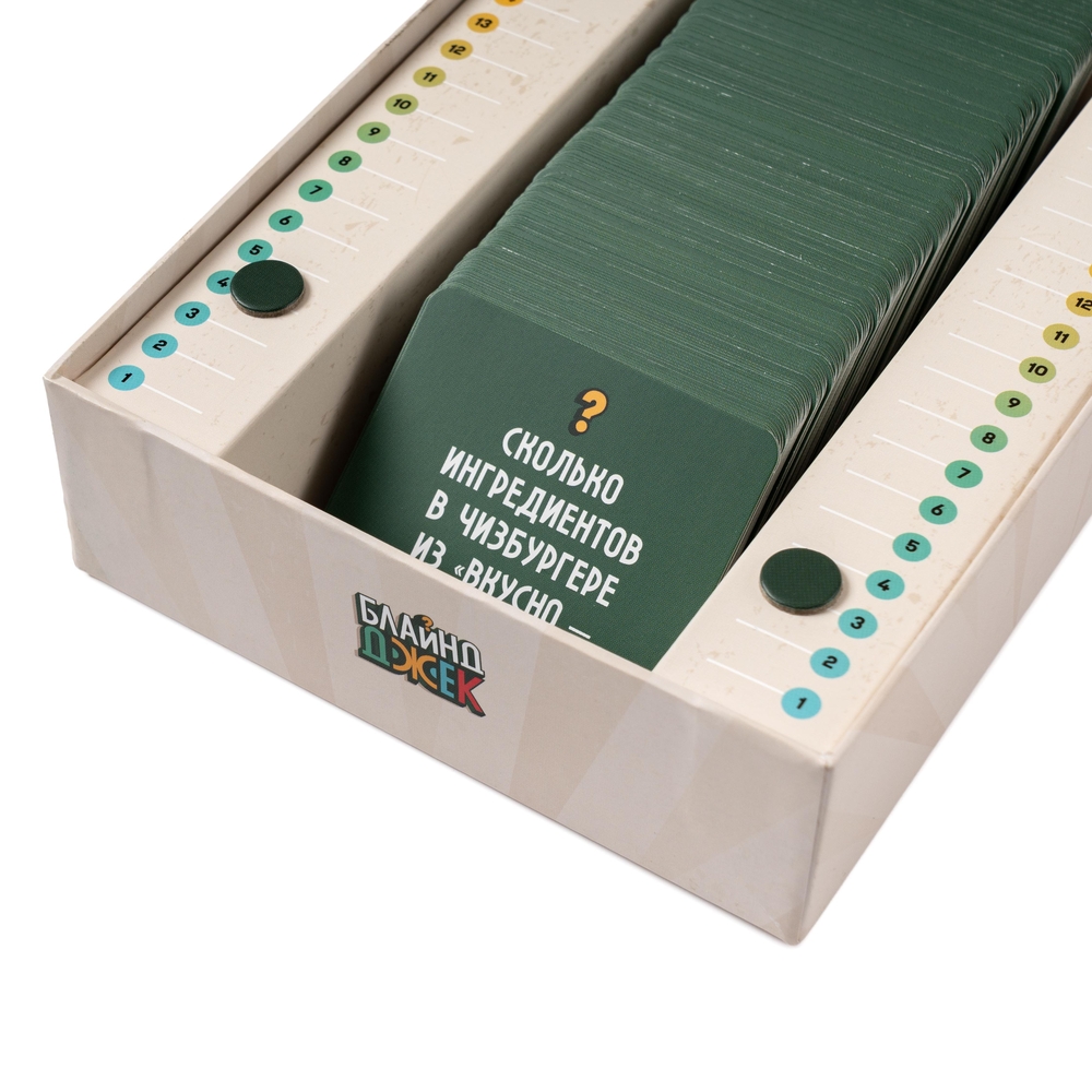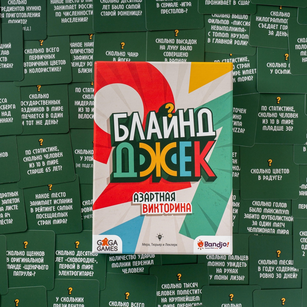 Встречайте одновременно умную и азартную игру для вечеринок. "Блайнд Джек" – ядерная смесь карточного Блэкджека и классической викторины. Собирайте за столом команду самых рисковых и эрудированных игроков, чтобы делать ставки... вслепую! Сможете набрать ровно 21 очко, полагаясь на свои знания, удачу и интуицию?