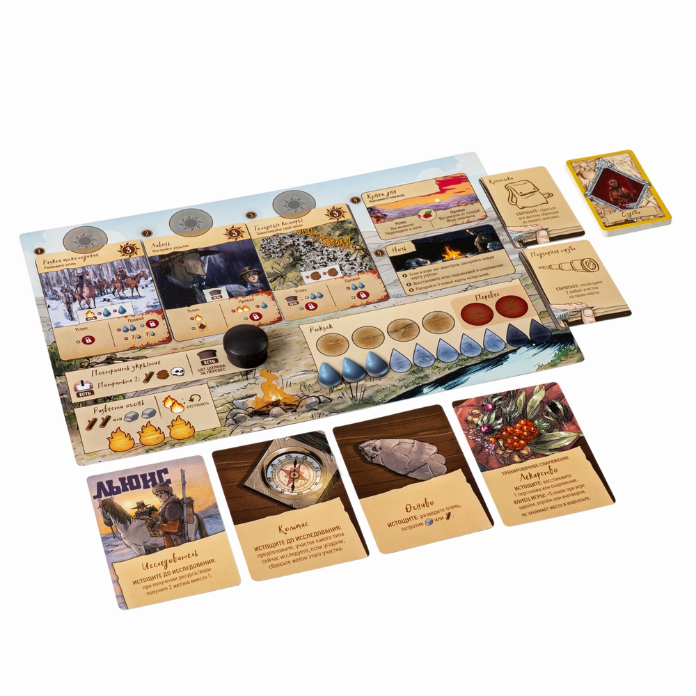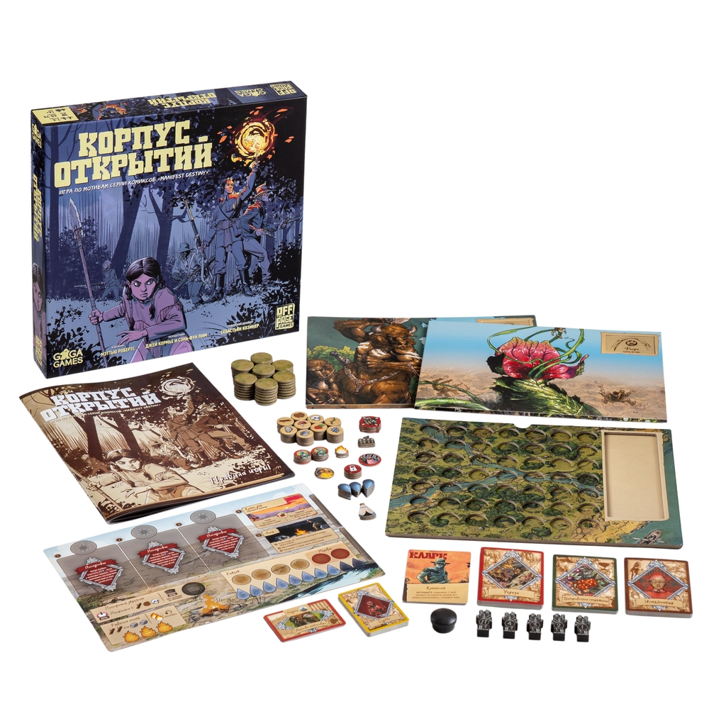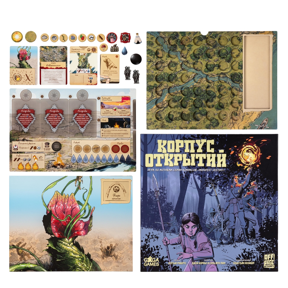 "Корпус открытий" – дедуктивная кооперативная игра на выживание. Вместе с командой первооткрывателей (или в одиночку) вам предстоит исследовать дикие земли Америки, обращаться за поддержкой к коренным племенам, принимать непростые решения и бороться с чудовищами!